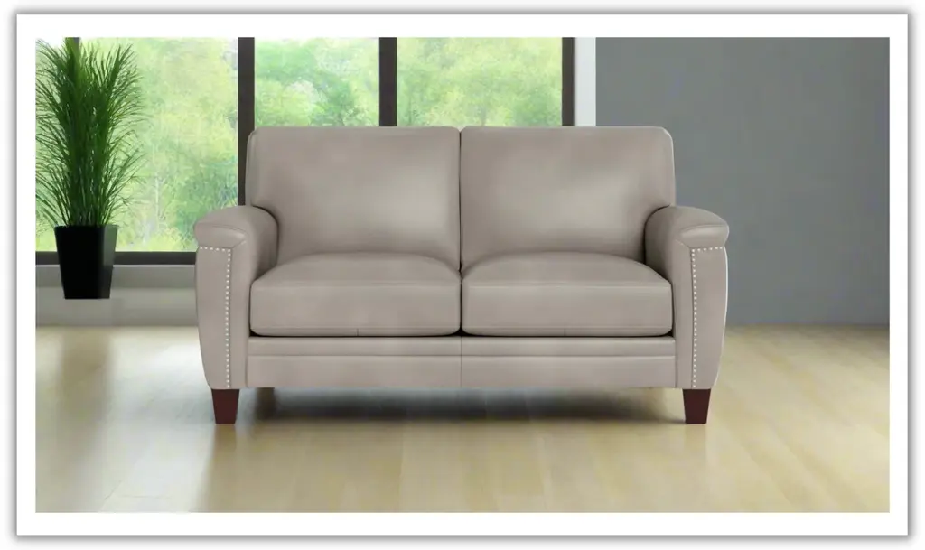 The Albany Loveseat is proudly made in the USA from 100% top grain leather and is built to last with its Limited Lifetime Frame & Spring warranty. It begins with sleek, transitional track arm styling which is a perfect compliment to any d_cor. It's then upholstered in a soft and subtly two-toned Aniline Plus top grain leather which retains the natural beauty and feel of the leather hide while providing superior protection against everyday use. Double stitched seams offer the utmost in strength & durability, while fully padded side & back panels add structure and quality.