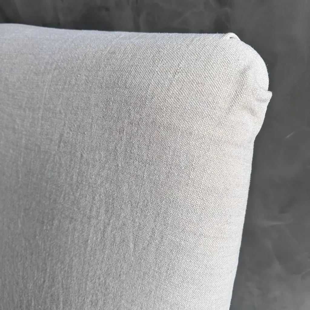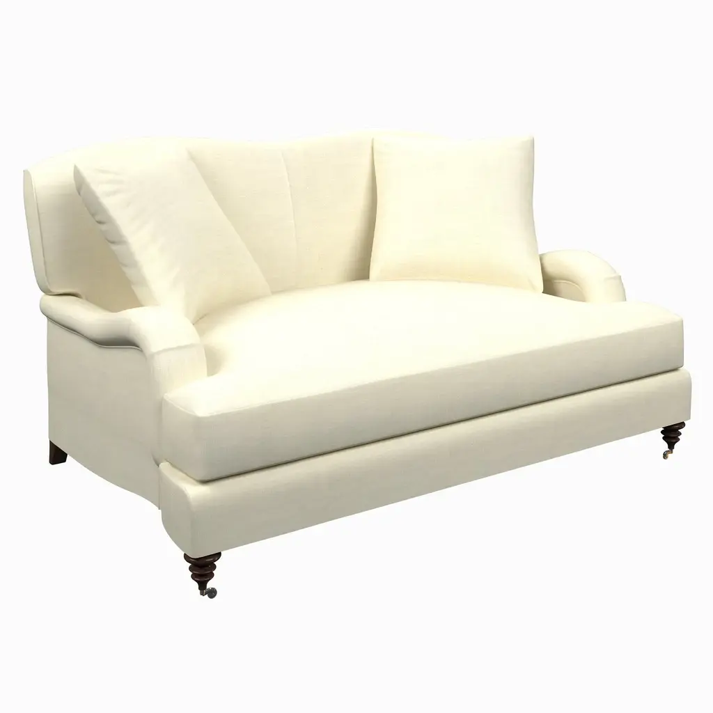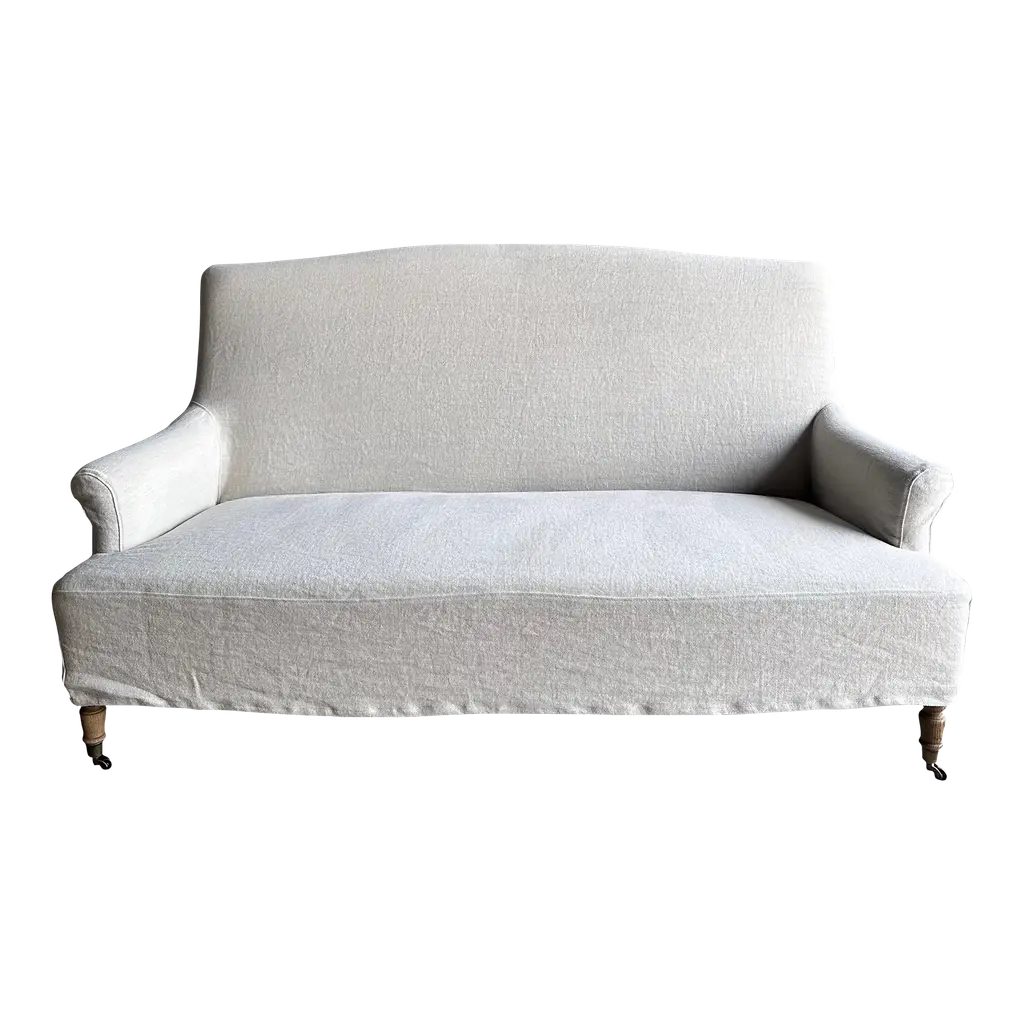 Alma Linen Slip Covered Loveseat Settee With White Oak Legs And Caster Wheels
