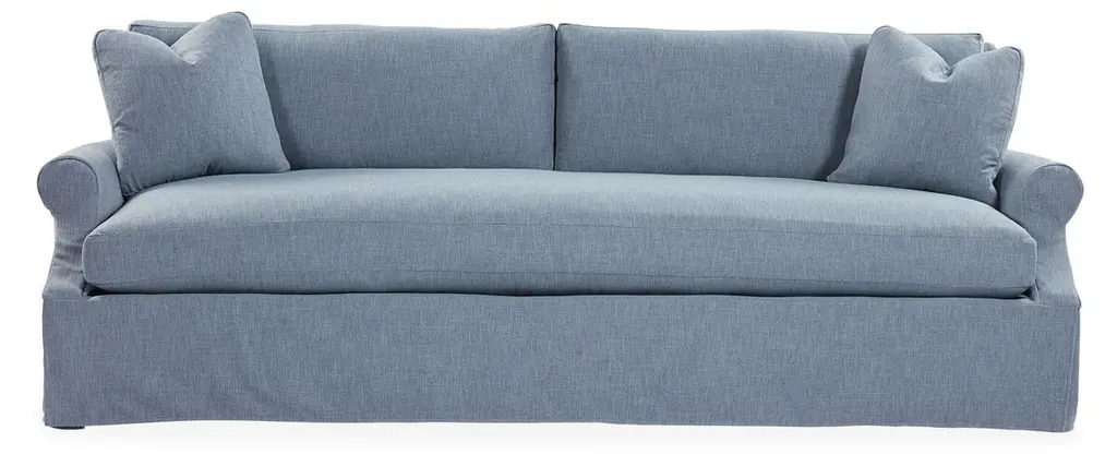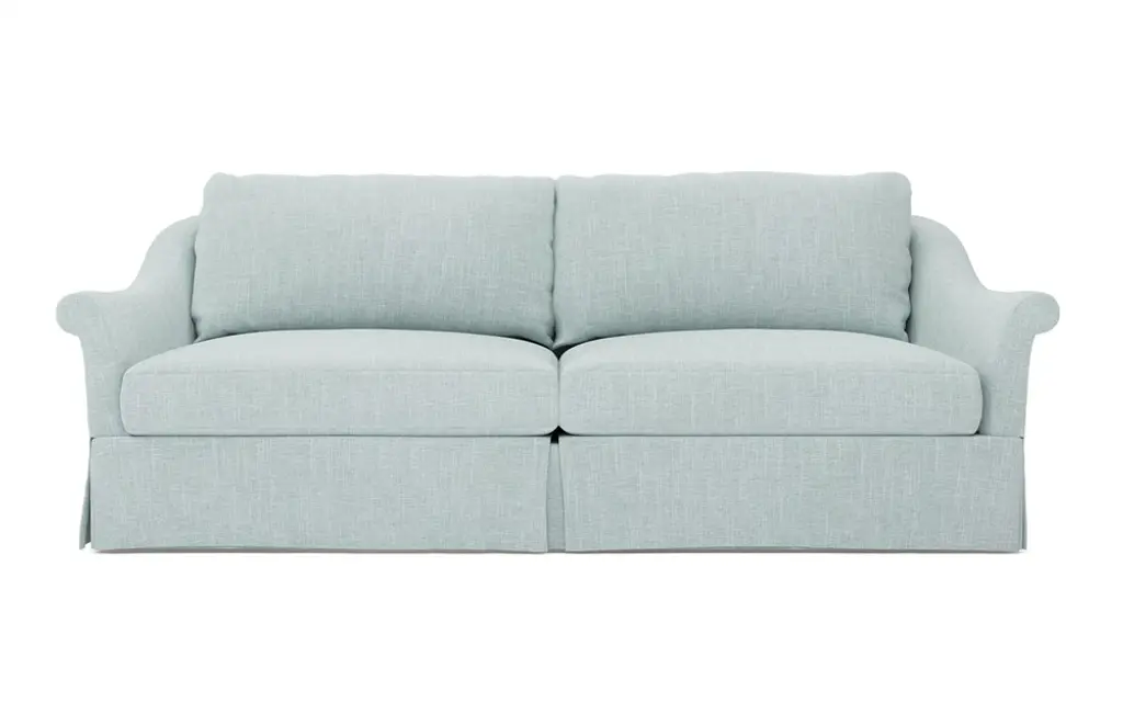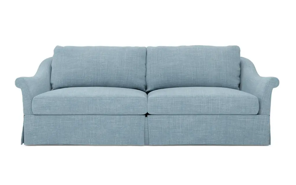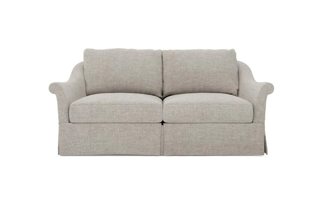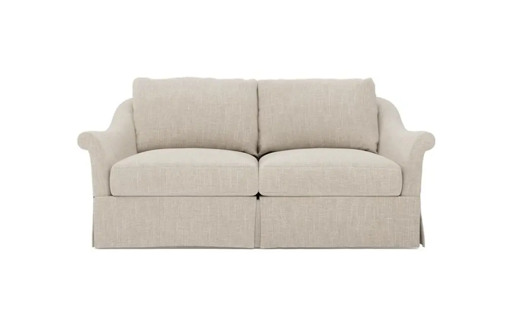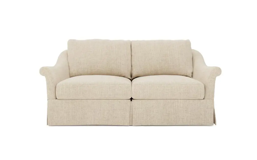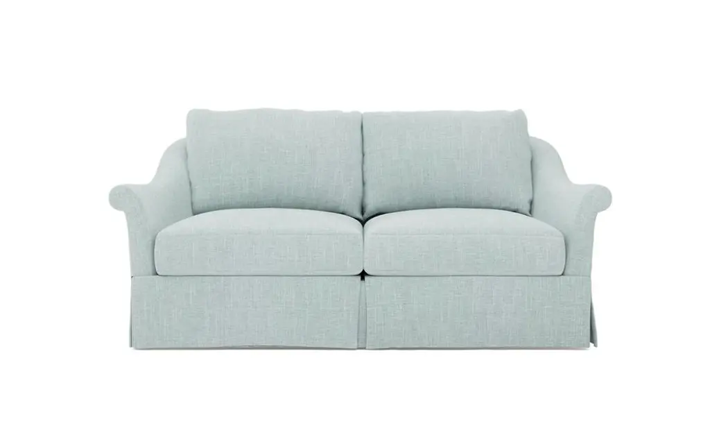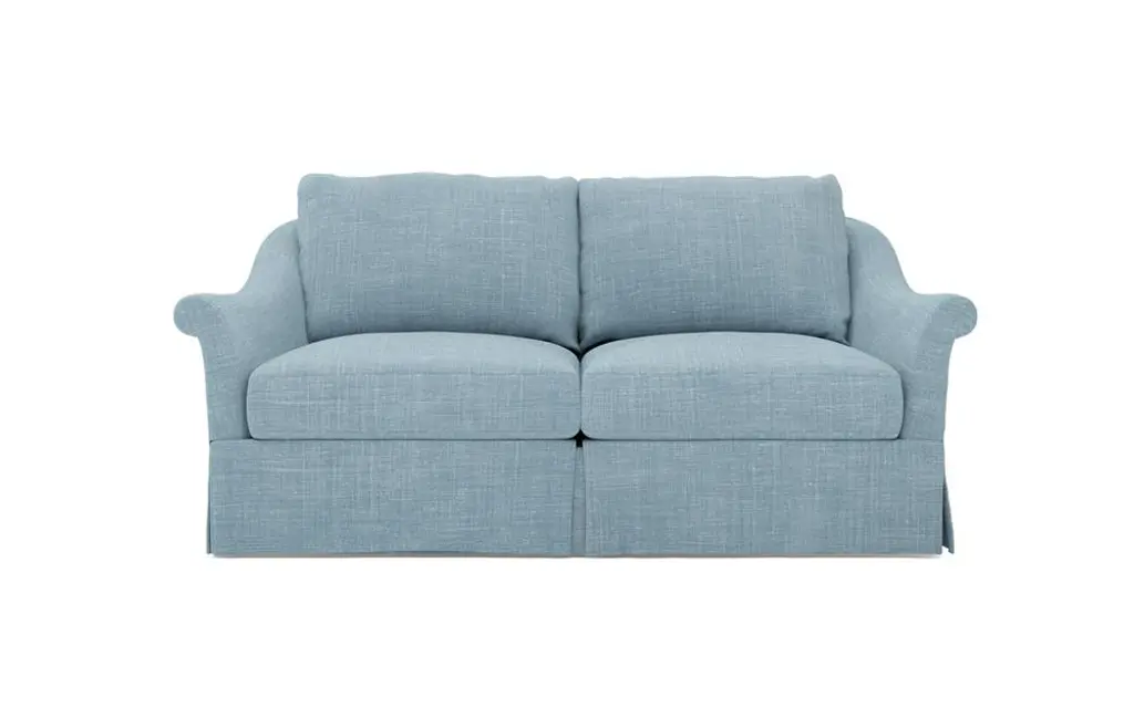 A Kathy Kuo Home exclusive, our 72” Amelie loveseat has an elegant, timeless French design. The seat cushions offer EXTRAORDINARY COMFORT, with a foam core surrounded by a blend of feathers and duck down. With flared roll arms, a skirted base, and a gently curved, subtly tapered back, the chic silhouette embodies classic sophistication and is beautiful from every angle. Choose from a variety of upholstery options, including linen and performance fabrics.