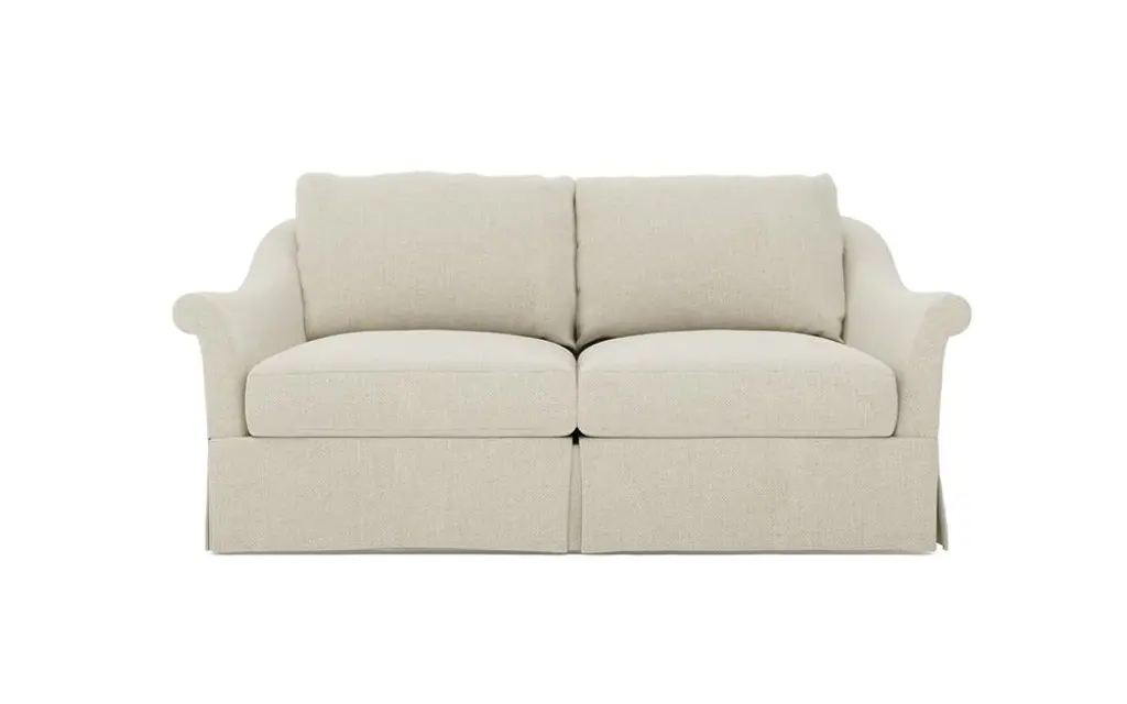 A Kathy Kuo Home exclusive, our 72” Amelie loveseat has an elegant, timeless French design. The seat cushions offer EXTRAORDINARY COMFORT, with a foam core surrounded by a blend of feathers and duck down. With flared roll arms, a skirted base, and a gently curved, subtly tapered back, the chic silhouette embodies classic sophistication and is beautiful from every angle. Choose from a variety of upholstery options, including linen and performance fabrics.