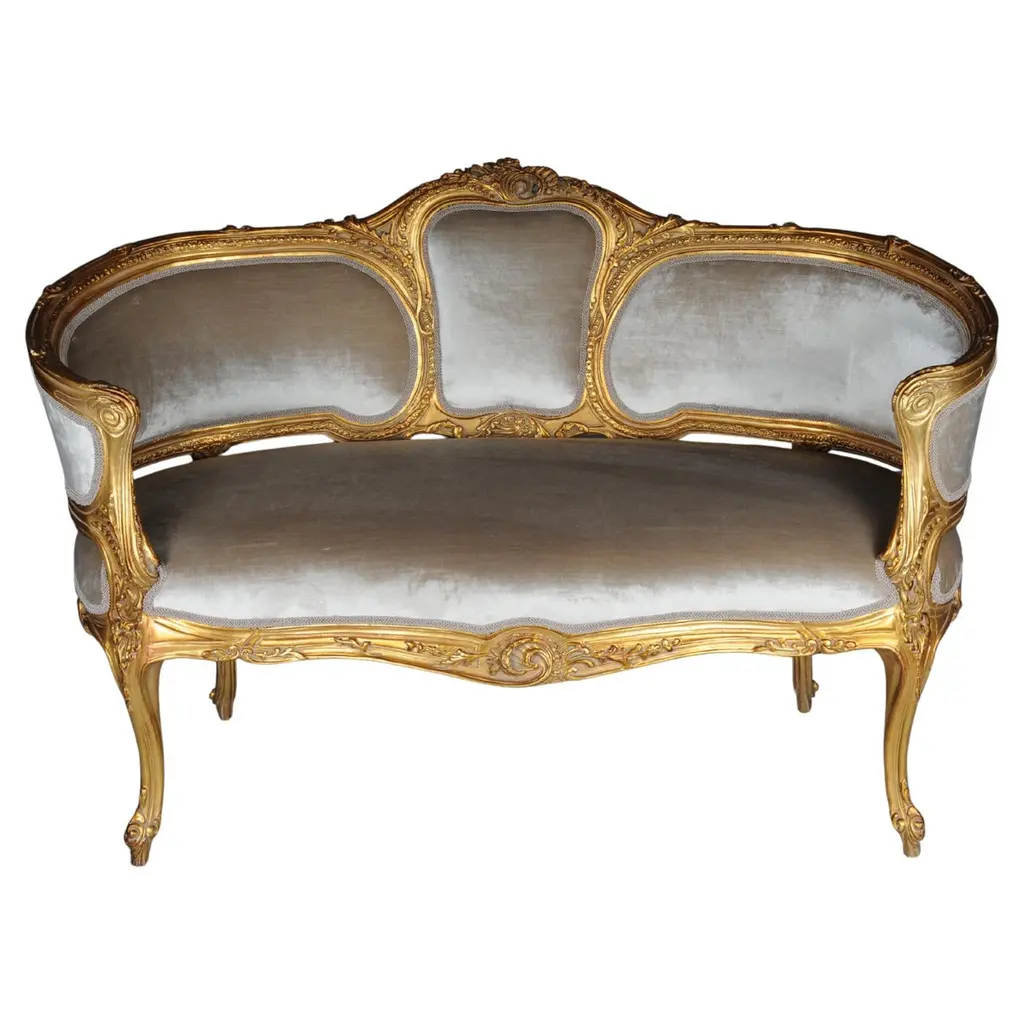 Antique Louis Xv Style Painted And Gilt Settee (2 Available)