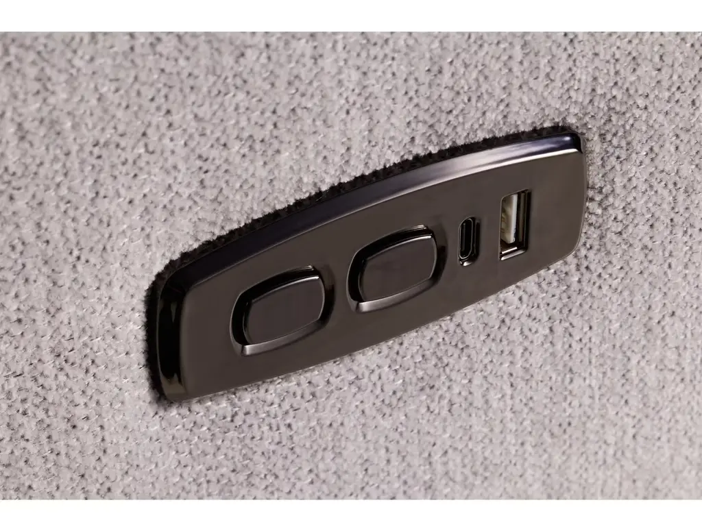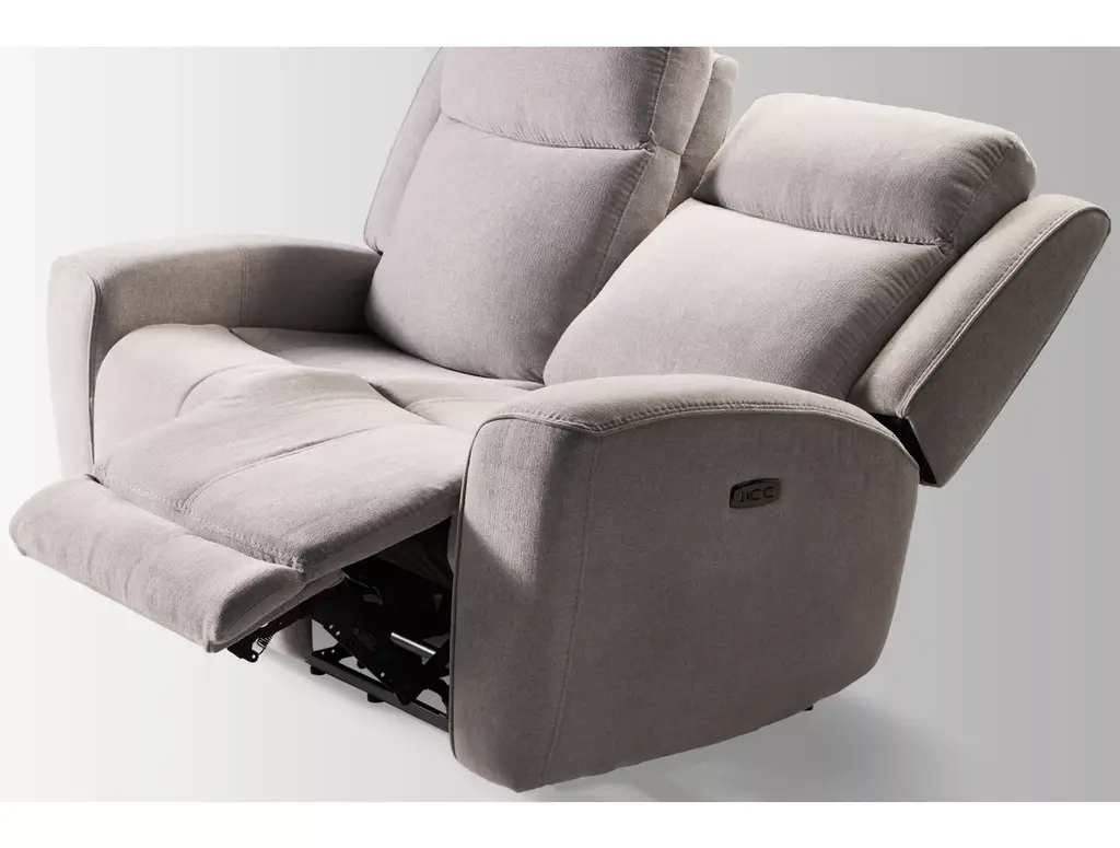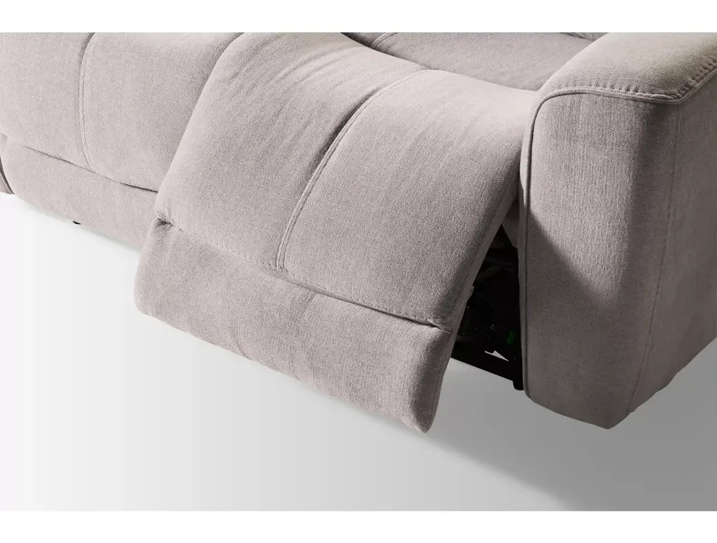 Relax in luxurious comfort with the Apollo Power Loveseat Recliner with Power Headrest from Kuka Furniture. This contemporary-style loveseat features soft fabric upholstery with track arms, and channeled backs and footrests. View your favorite programs sitting upright or recline and take a nap at the touch of a button. A convenient USB port lets you charge your electronic device while you recline.