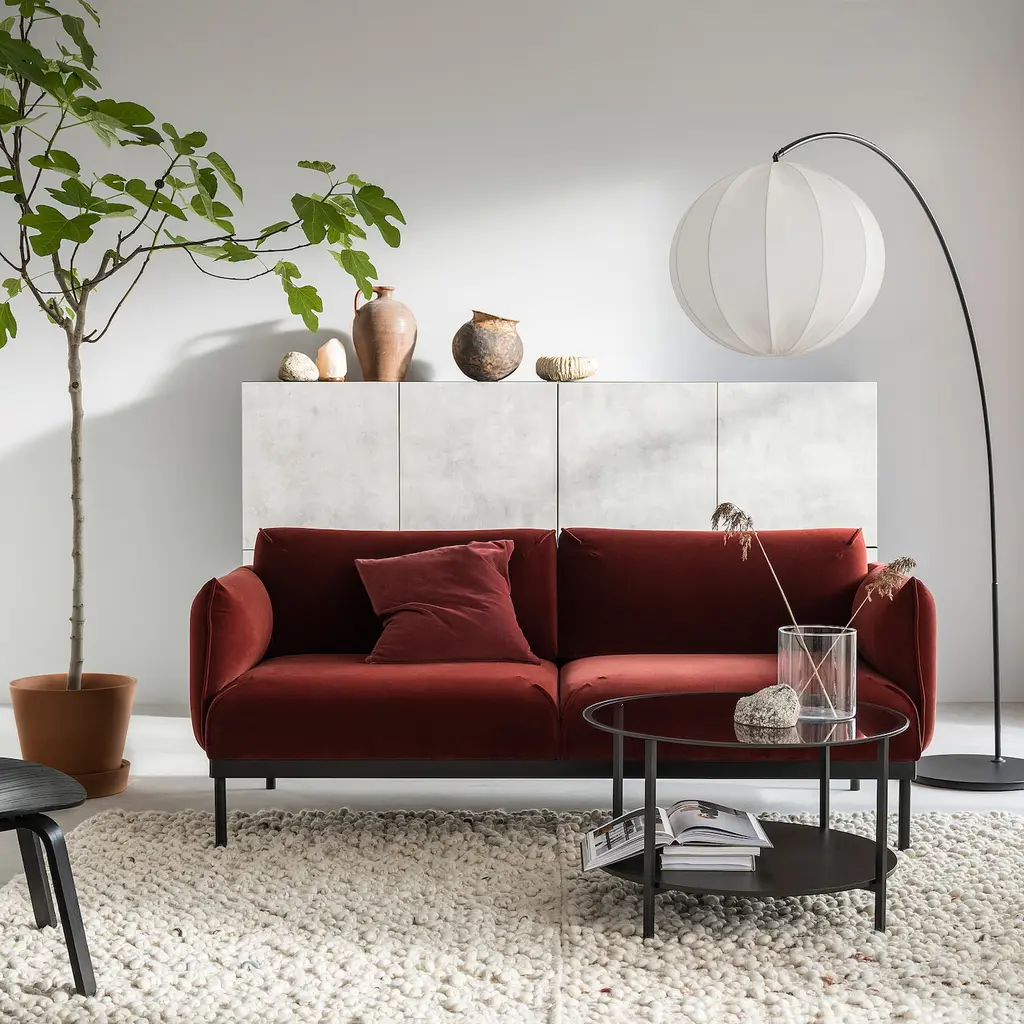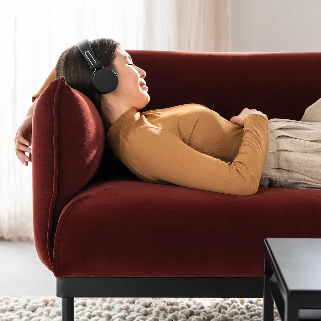 ÄPPLARYD Loveseat - Djuparp red-brown. This sofa has an effortless stylishness and straightforward exterior with a well-tailored soft cover and comfortable inner pocket springs. The slim legs reinforce the tranquil and airy look. Stationary cover.