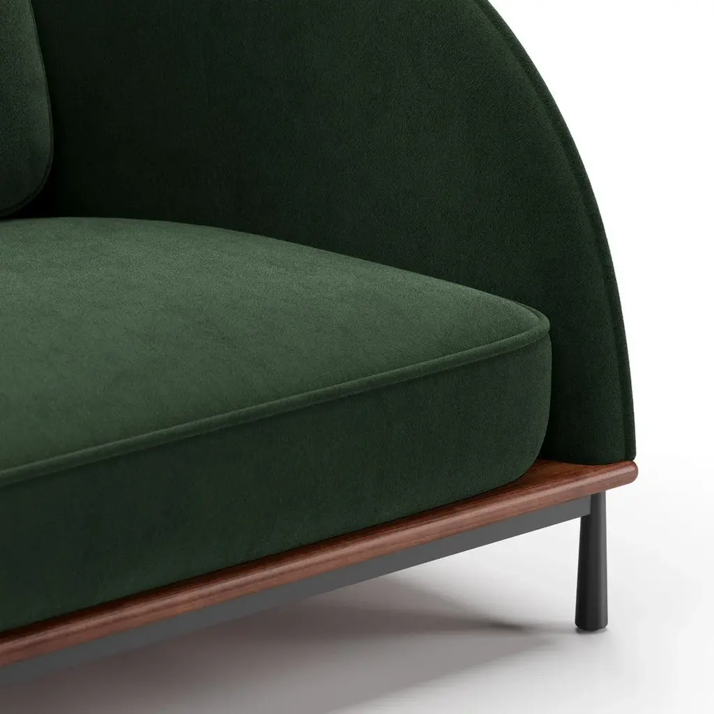 The Arc collection is a response to the modern work situation, which the designer wanted it to provide the shelter and remind people of home. The designer gave this collection a distinct character and made it stand out from typical contract furniture. The soft silhouette of the sofa strengthens the instantly recognizable character. A thick seam sweeps along the edge of the sofa, like a barrier between the strict and straight outside shape, and the softer sculpted inside. With embracing curves and intricate upholstery details, the Arc collection has a gentle character that makes it the perfect for both retail and soft contract market.