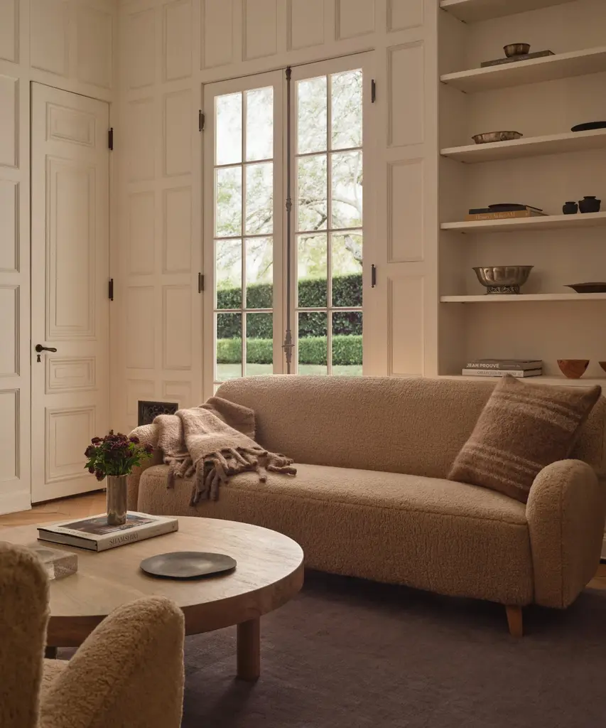Aspen Sofa Oatmeal Sherpa An updated take on a classic mid-century modern shape, the Aspen Sofa is the perfect way to add a touch of timeless design to any space. Upholstered in luxuriously plush sherpa fabric. For a free fabric swatch, please click here. Frame made of kiln dried pine wood and plywood with solid white oak legs in natural finish. Cushion crafted from high-density foam core wrapped with poly-fiber. Made in China. For furniture purchases, please refer to our furniture inspection policy here, and for help styling this piece in your space, contact [email protected] for a complimentary consultation. CA Residents: Prop 65 Information CA Residents: Prop 65 Information