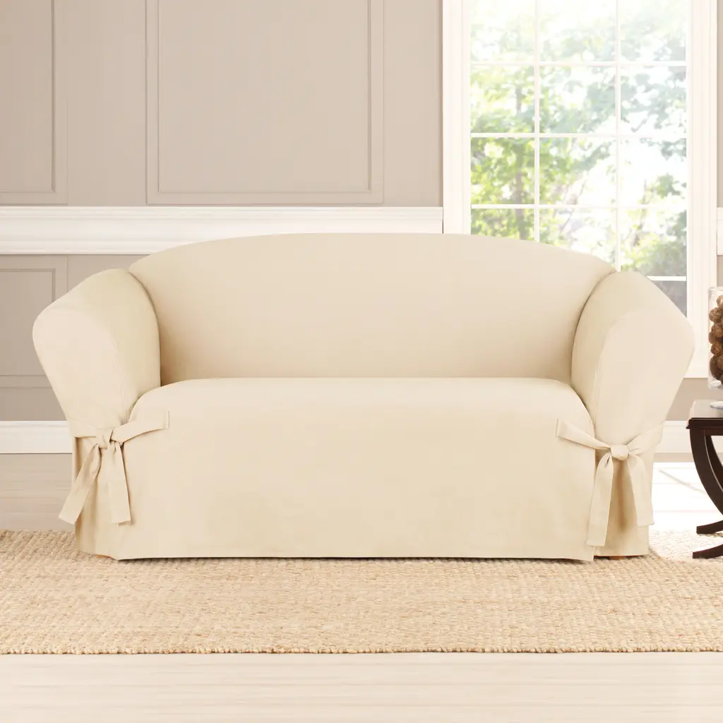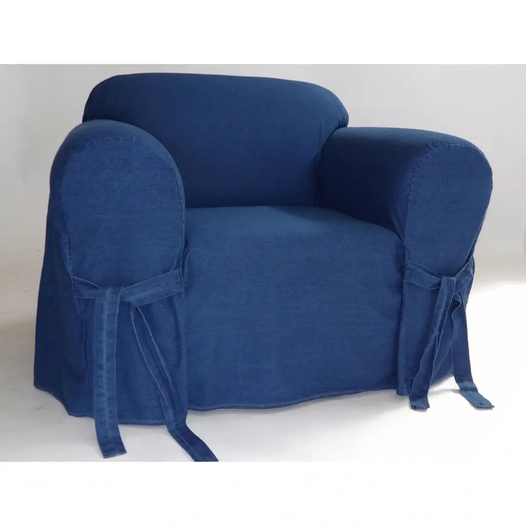 Nothing matches the style, true-blue character, and lasting durability of genuine denim twill. That's why we developed our Authentic Denim Slipcover collection. Just like your favorite jeans, the seams and edges are finished with ¼" double needle stitching for long wear. The relaxed, easy going fit drapes nicely around furniture. Machine washable.