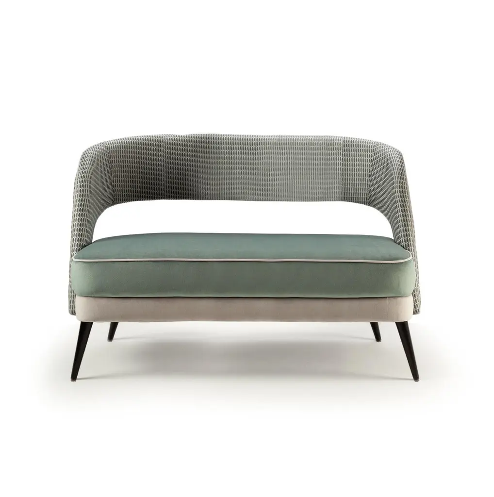 Ava Settee 2-Seat Olive Green Seat And Textured Fabric Backrest Wooden Feet