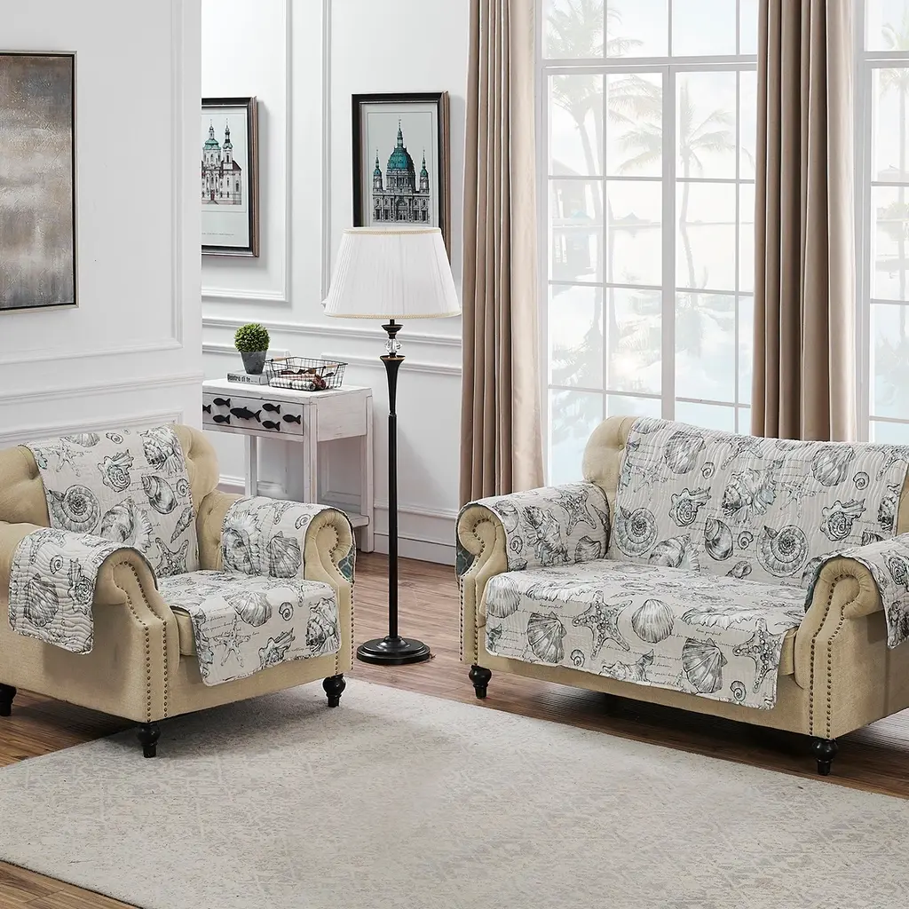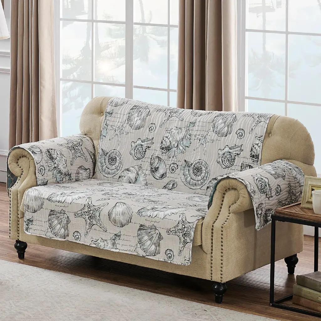 Guard your loveseat from sandy paws and kid messes with the Cruz Loveseat Protector from Barefoot Bungalow. This 100-percent polyester microfiber furniture protector is quilted for added durable comfiness and has a removable elastic strap that secures this loveseat protector in place. The seashell design blends right in with beachside home decor.