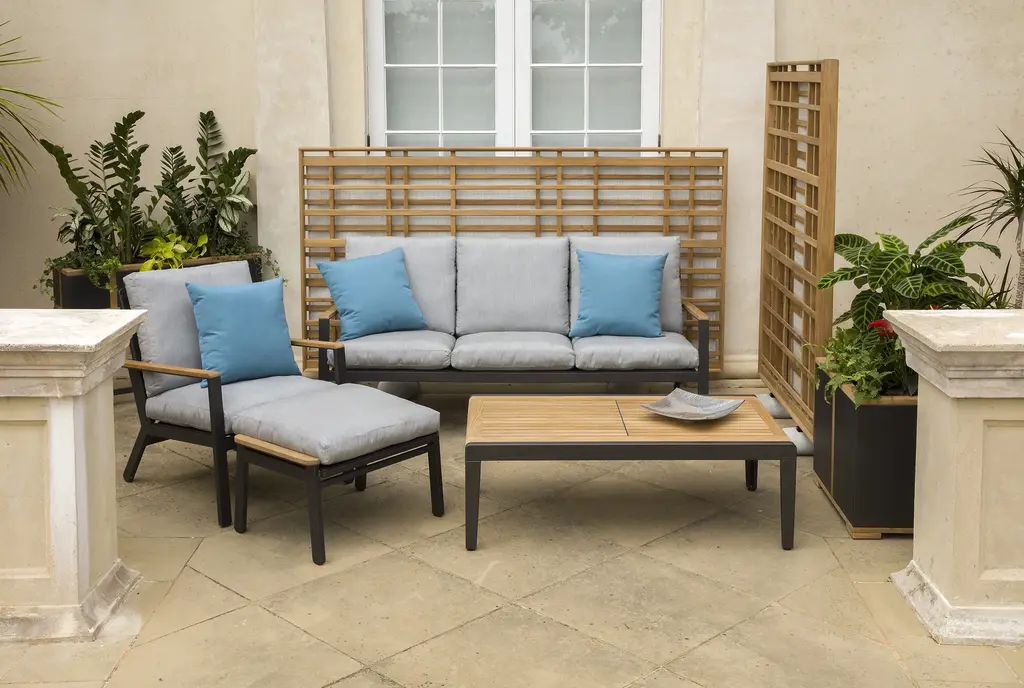 Choose the clean minimalist profile of the Barlow Tyrie Aura Collection and create a stunning contemporary outdoor living space. Fabrics Note: Additional fabric options are available upon request. Please contact us for a quote: 800-762-5374 or customercare@frontera.com. Please Note: Fabrics, canopies, cushions, covers, special order sling colors, and special order finishes are considered customized and may have longer lead times. These items cannot be cancelled, returned, or exchanged.