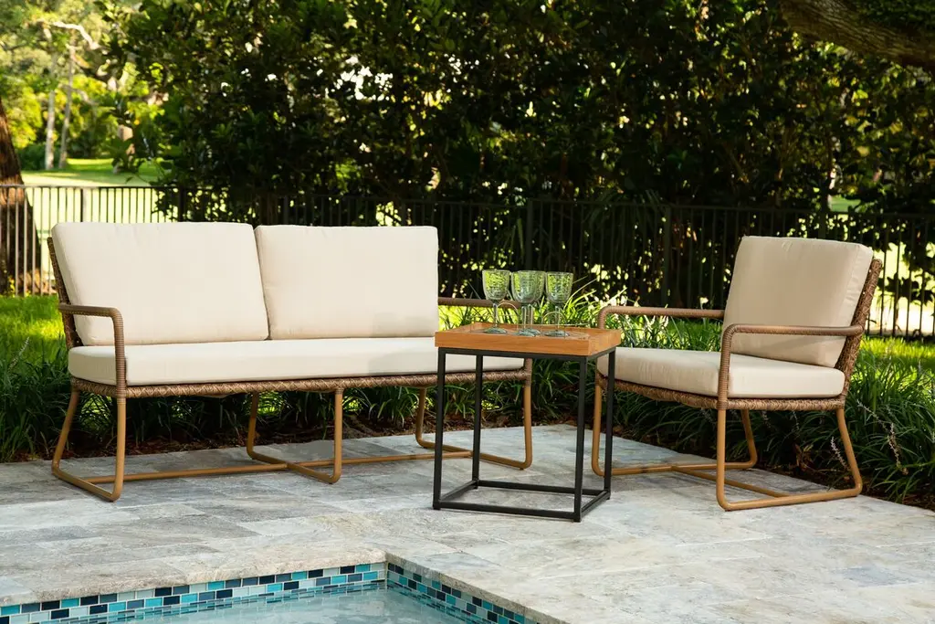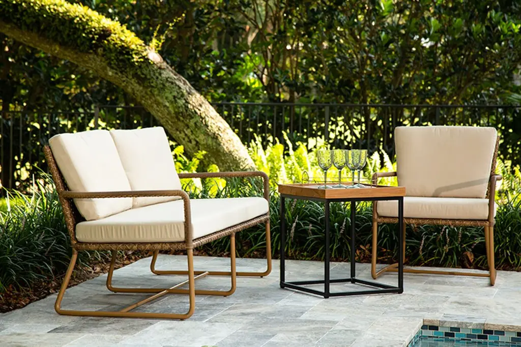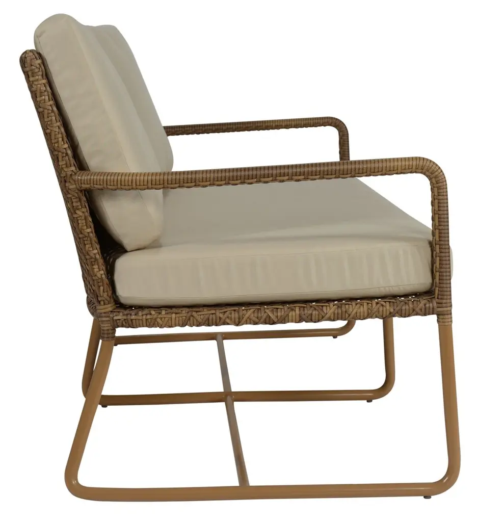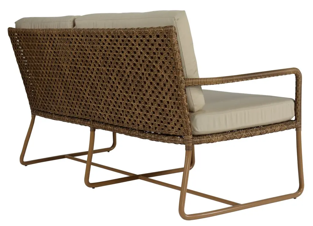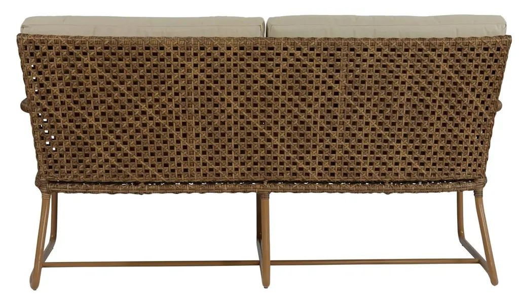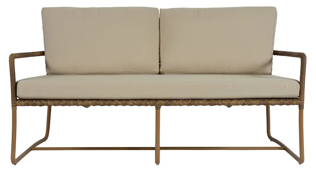 Strips of UV-resistant, water-resistant fiber are woven over a frame made of powder-coated aluminum, ensuring that this loveseat is as durable as it is handsome. Its amply filled, removable cushions are covered in stain-resistant, weather-resistant Sunbrella fabric.