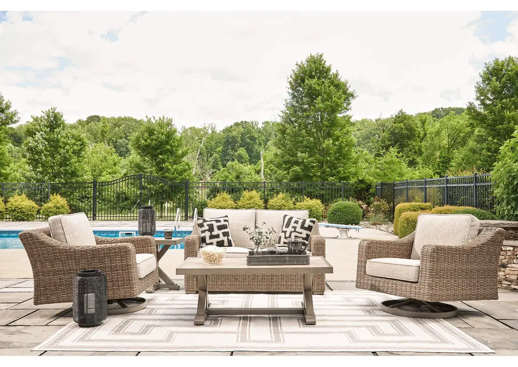 Sporting an easy-on-the-eyes look inspired by driftwood, the Beachcroft loveseat elevates the art of alfresco living. Beautiful and durable enough for indoor and outdoor use, the high-style/low-maintenance seating entices with plush removable cushions wrapped in Nuvella® fabric that’s a breeze to keep clean. Weight 81.000 lbs. (36.45kgs.)