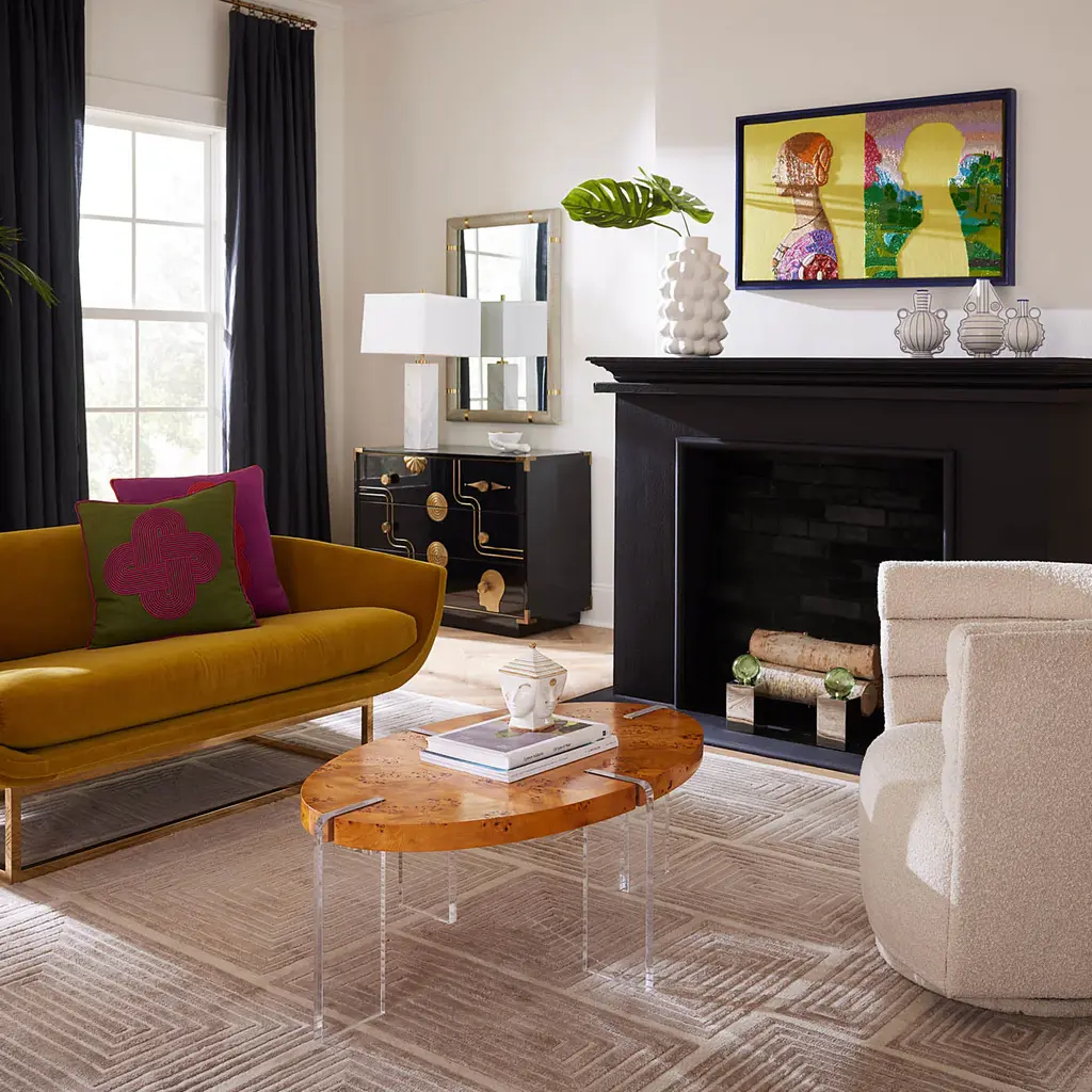 New Traditionalism. Minimalist rigor meets cocoon-y comfort. Our Beaumont collection's architectural yet airy bases are juxtaposed with silhouettes softened by sculptural flair. Balance and geometry get a glamorous lift from shiny polished brass. Feels luxe and cozy in our Olympus Oatmeal bouclé or emanates a slight sheen in our surprisingly versatile lichen velvet.