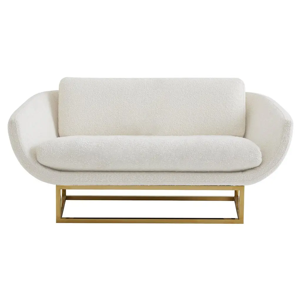 New Traditionalism.Minimalist rigor meets cocoon-y comfort. Our Beaumont collection's architectural yet airy bases are juxtaposed with silhouettes softened by sculptural flair. Balance and geometry get a glamorous lift from shiny polished brass. Feels luxe and cozy in our Olympus Oatmeal bouclé or emanates a slight sheen in our surprisingly versatile lichen velvet.