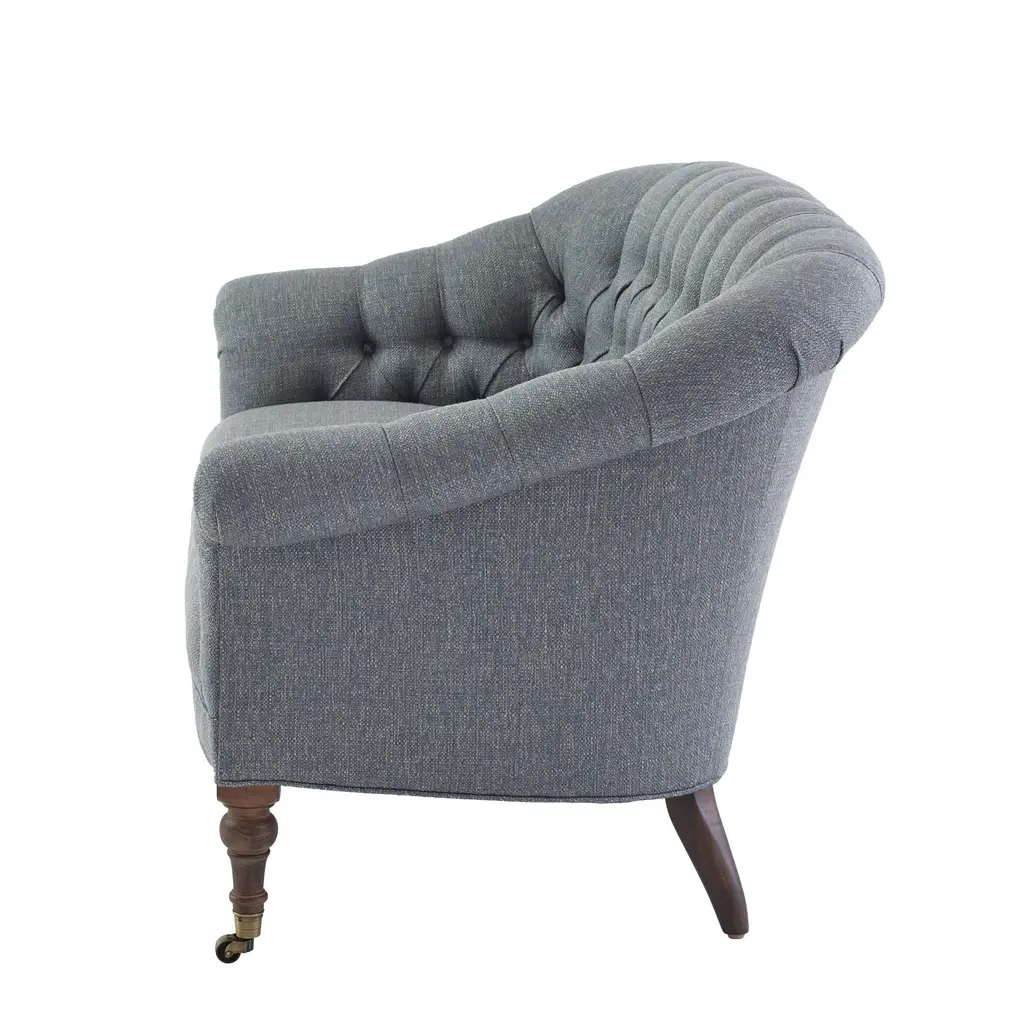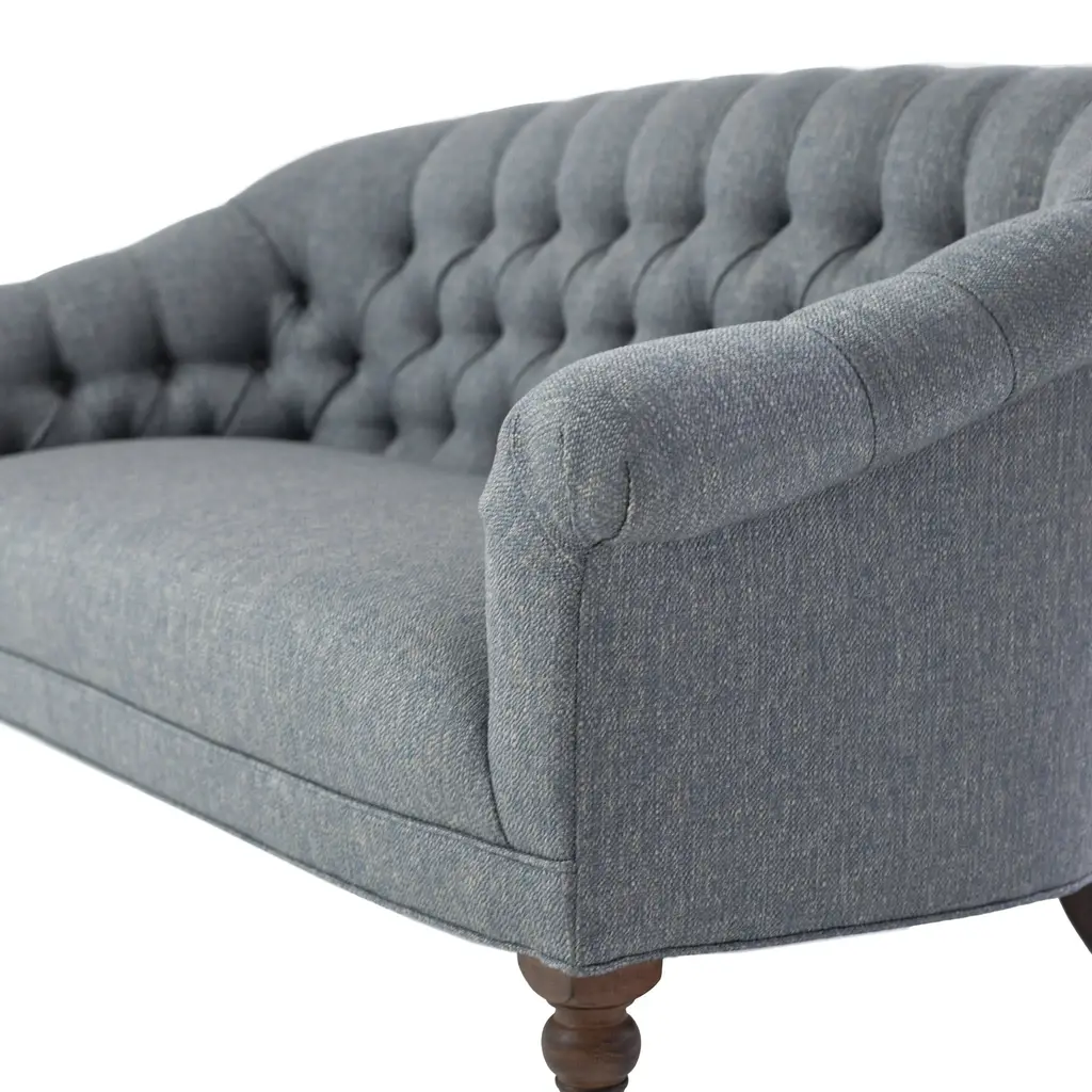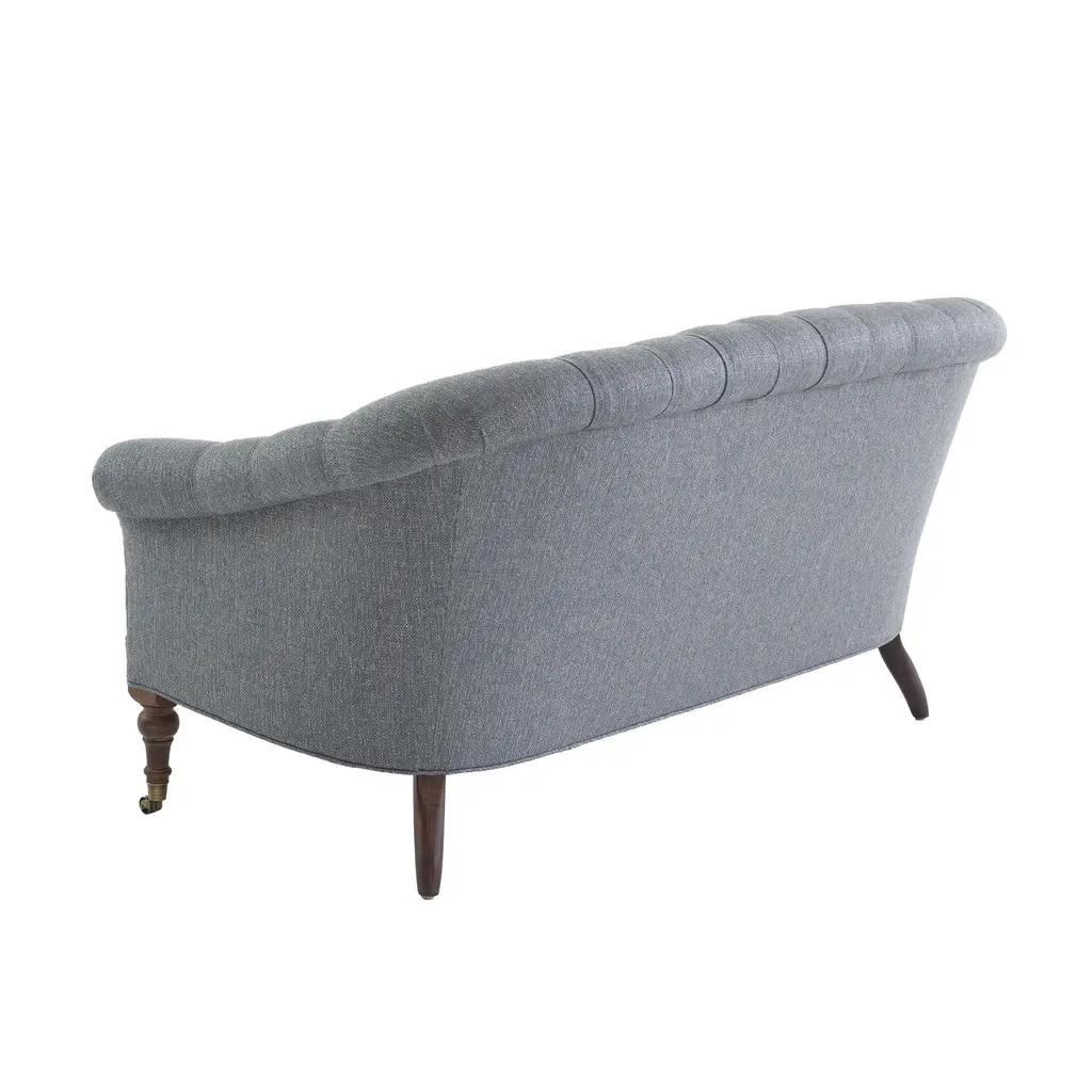 Graciously curved and timeless in sensibility, our Becket Loveseat is inspired by the classic Chesterfield sofa. Here in a smaller footprint with button tufting, lower rolled arms, graceful turned legs and nailhead trim. Custom upholstered in your choice of designer fabrics. Exclusively from Annie Selke.