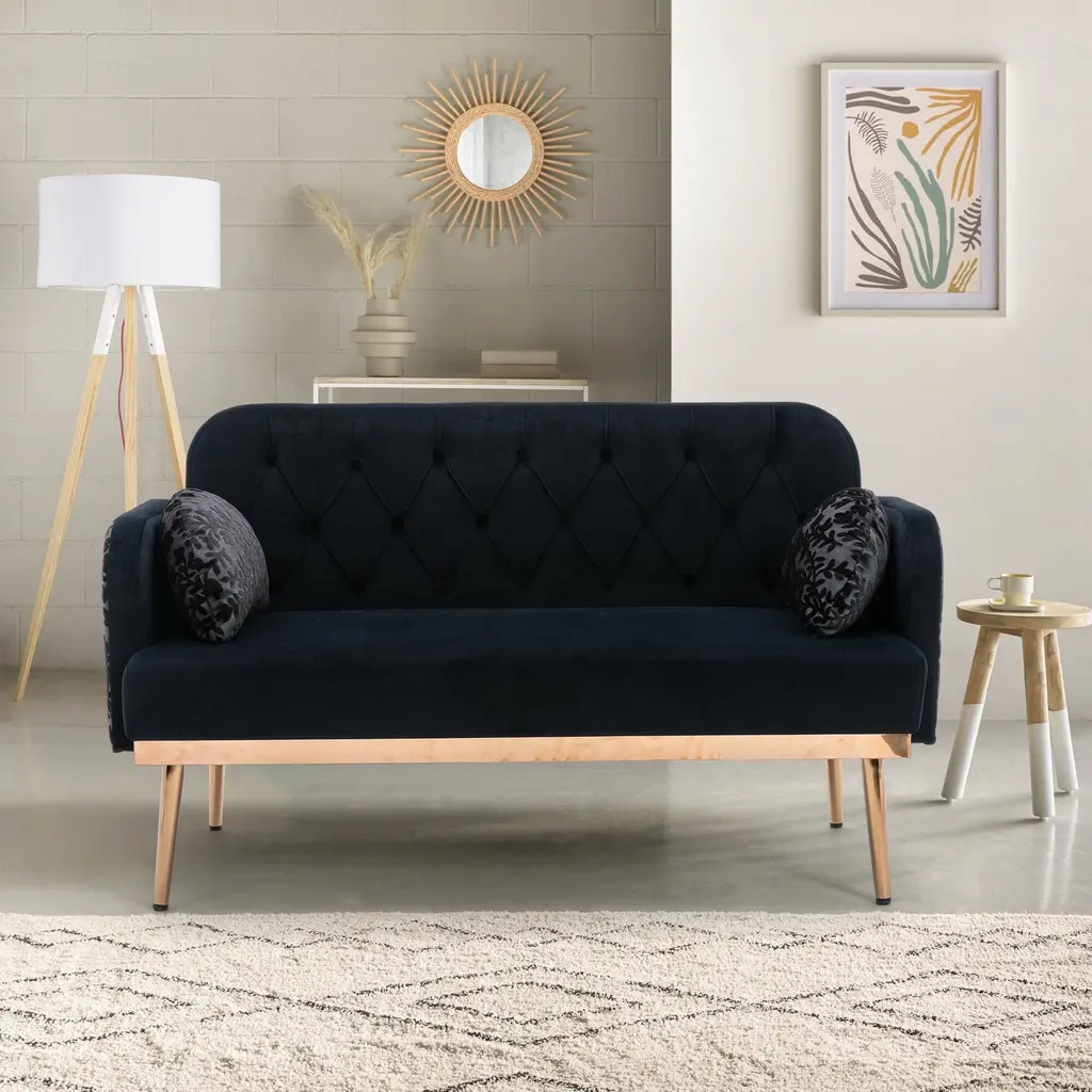 Belladepot Black Velvet Sofa Accent Sofa Loveseat Sofa With Metal Feet - Black