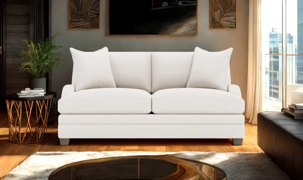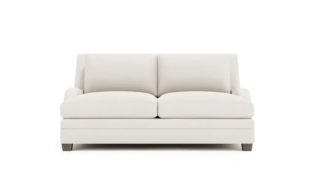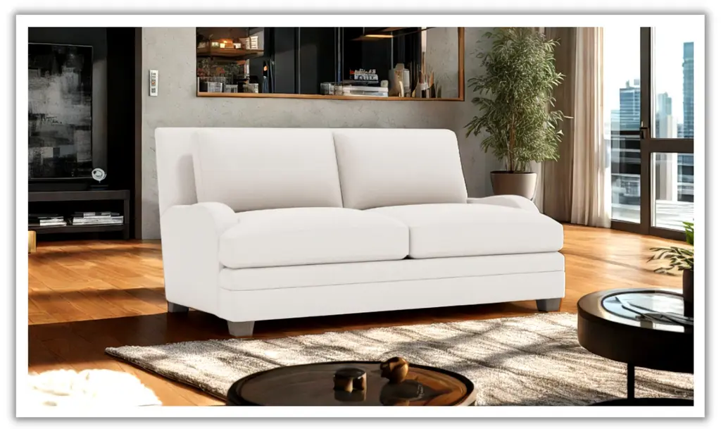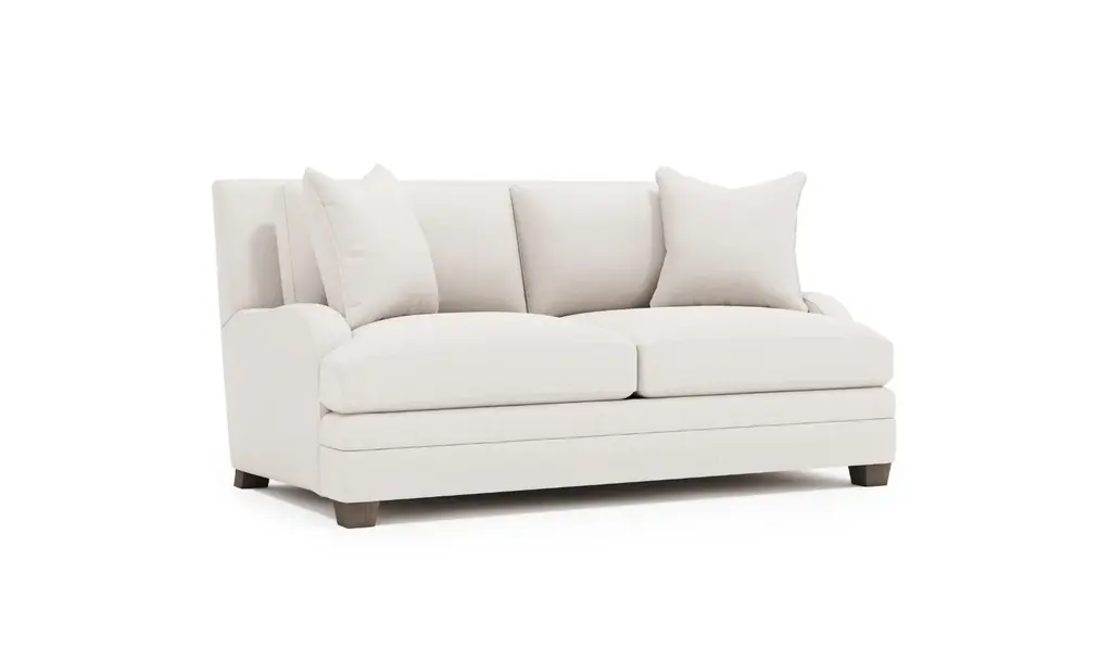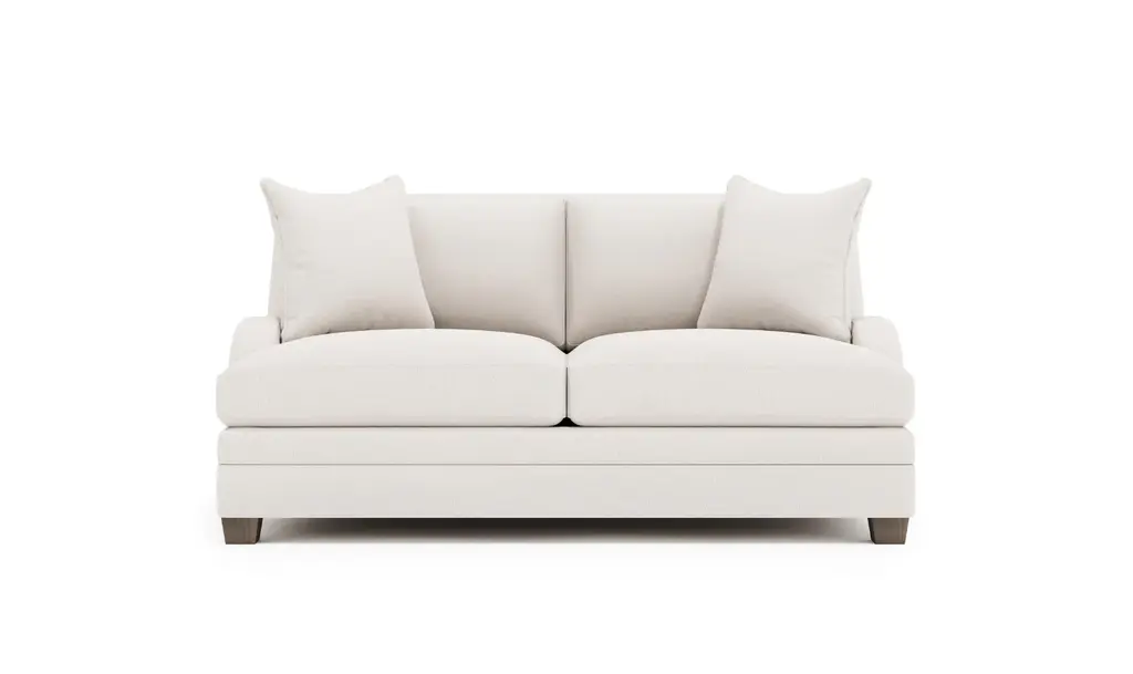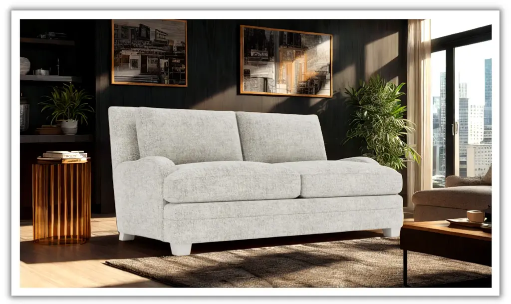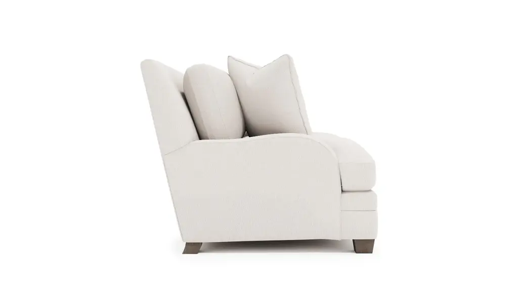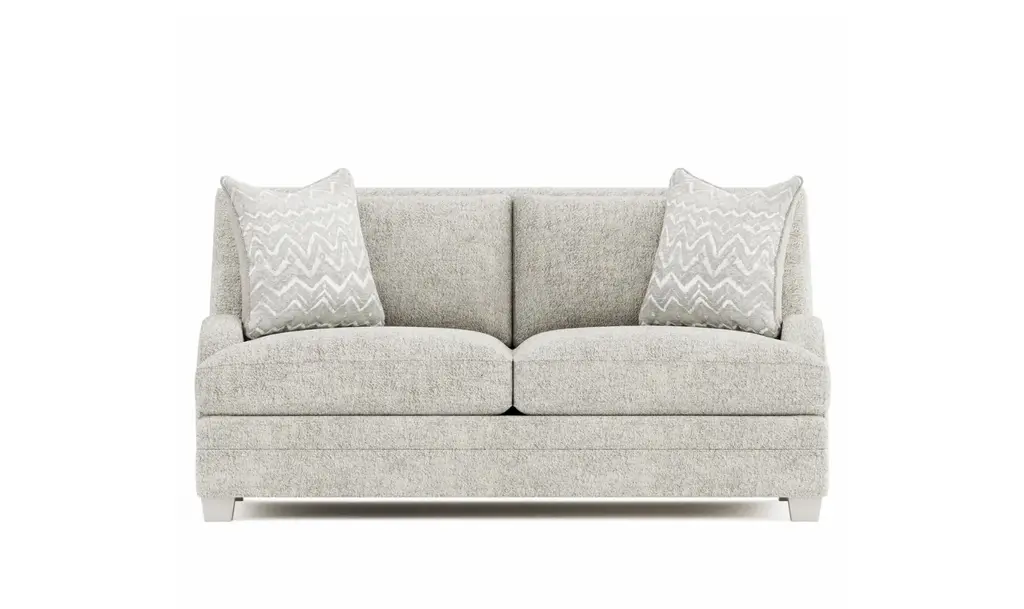 Transform your living space with the refined elegance and unparalleled comfort of the Bernhardt Rollins Fabric Loveseat. Designed with sleek, low-profile arms, this loveseat effortlessly combines modern sophistication with inviting coziness. The carefully tailored silhouette is enhanced by soft light gray upholstery, offering a timeless aesthetic that blends seamlessly with contemporary and transitional interiors. Its plush cushions and supportive back pillows create an incredibly comfortable seating experience, making it the perfect spot to relax, entertain, or simply unwind. With its versatile style and meticulous craftsmanship, the Rollins loveseat is a stunning centerpiece for any living room or lounge area. Crafted with luxurious materials, this loveseat prioritizes comfort and durability. The premium Spring Down seat cushions feature a full-support Marshall-type coil spring core, wrapped in polyfoam and encased in a blend of duck down, feathers, and soft polyester fibers for a plush yet supportive feel. The back pillows are filled with high-quality fiber and feature box-edge borders with topstitch detailing for added refinement. Complementing the loveseat's sophisticated design are two 21" x 21" blendown throw pillows with knife-edge detailing and welt accents. Whether you’re looking to create a cozy corner or elevate your entire space, the Bernhardt Rollins Fabric Loveseat is a perfect combination of elegance and comfort.