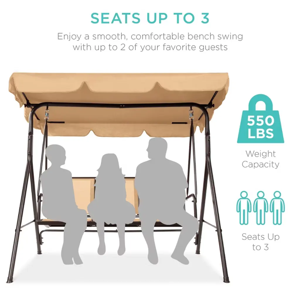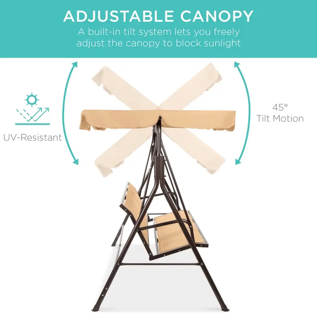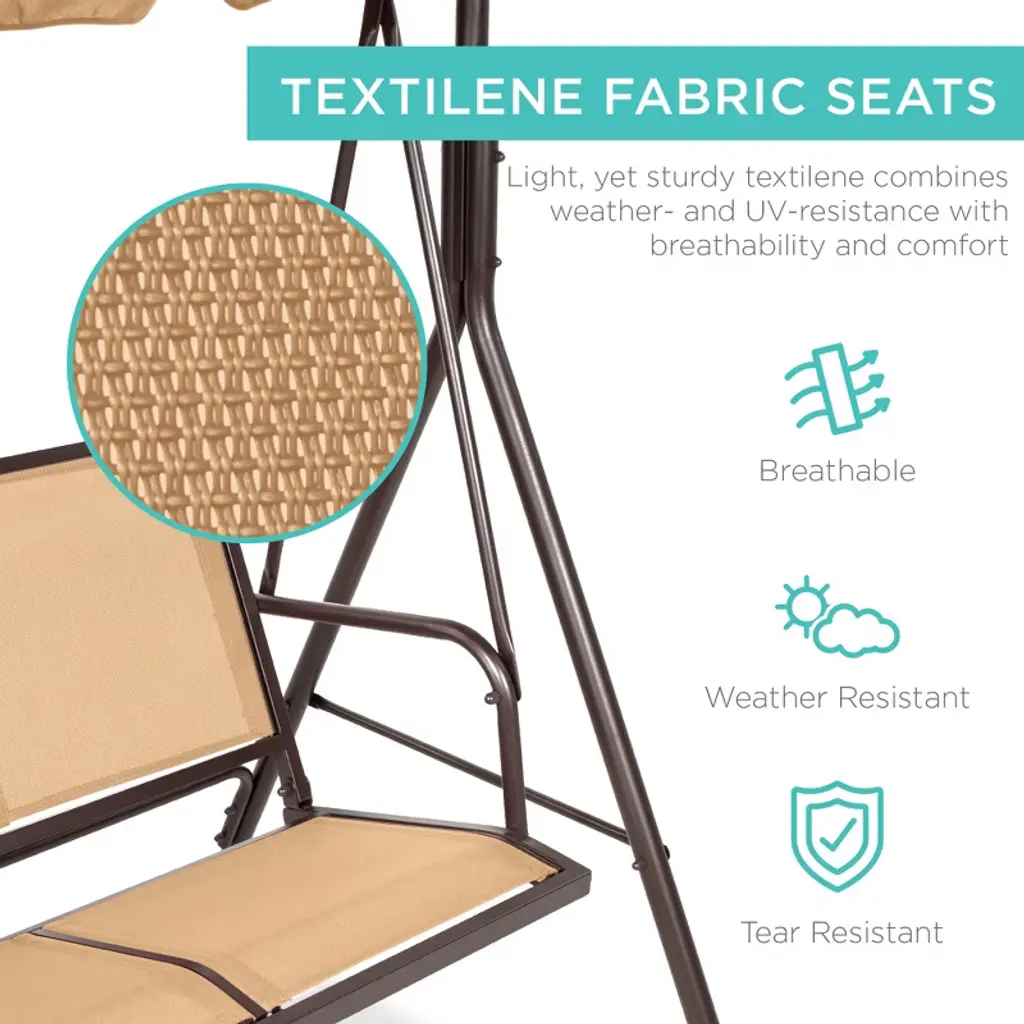Best Choice Products 2-seater Outdoor Adjustable Canopy Swing Glider Patio Bench W/ Textilene, Steel Frame - Tan