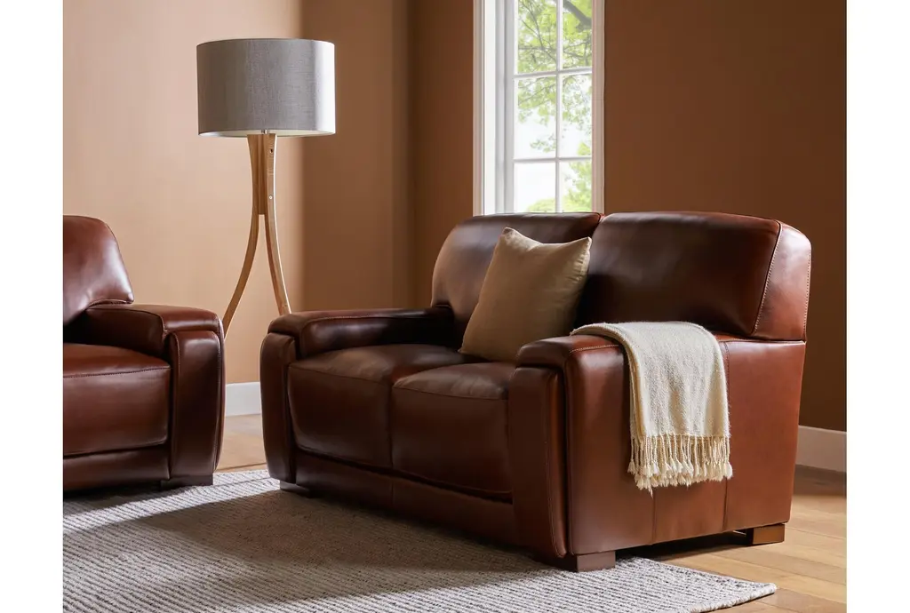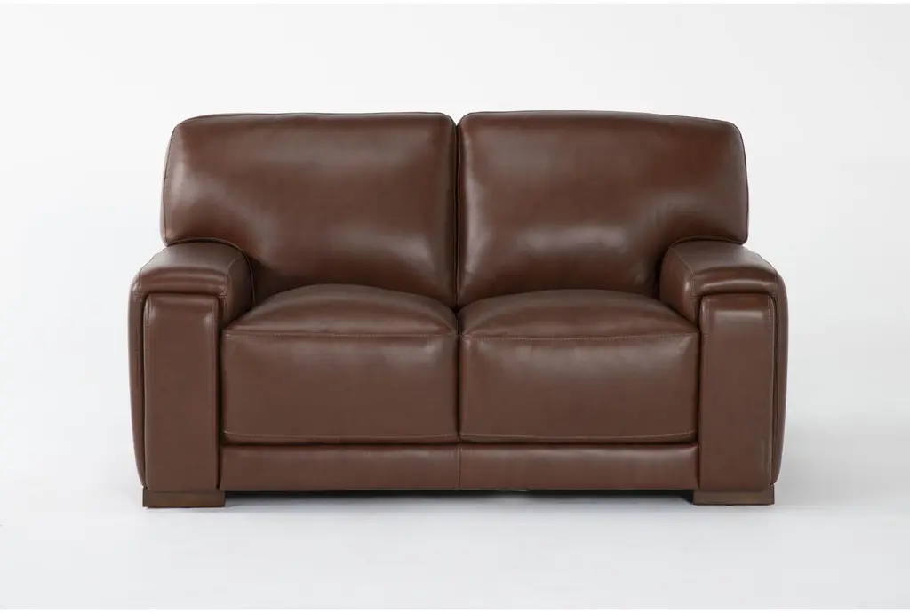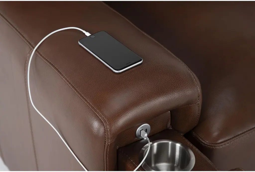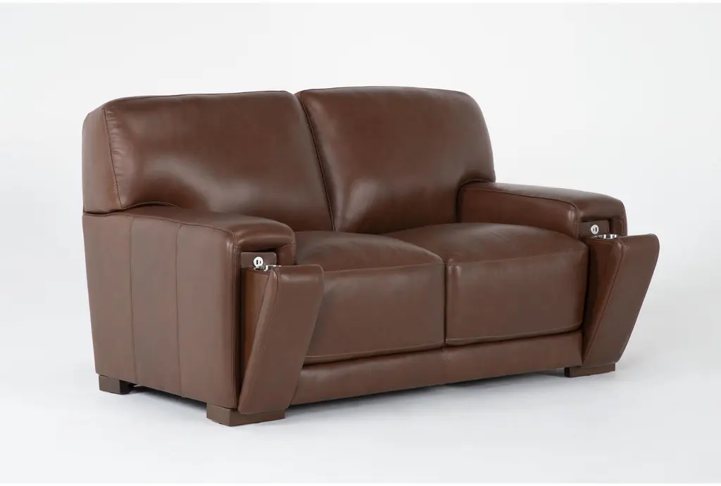 Bisbee Chestnut Brown Leather 66" Loveseat with Cupholders & USB