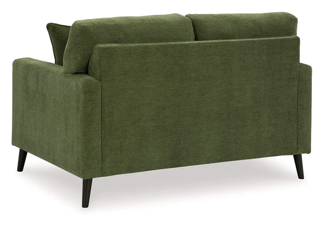 Feed your mid-century modern nostalgia—with a contemporary twist. A vibrant trend-right hue and comfy feel make the Bixler loveseat perfect for lounging solo or with friends and family. Its linear profile adds plenty of fresh style, and the tapered accent legs are a nice revival. Weight 96.000 lbs. (43.2kgs.)