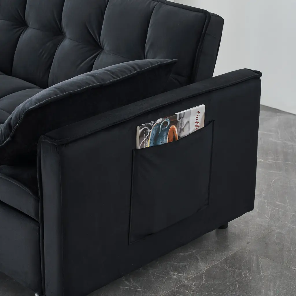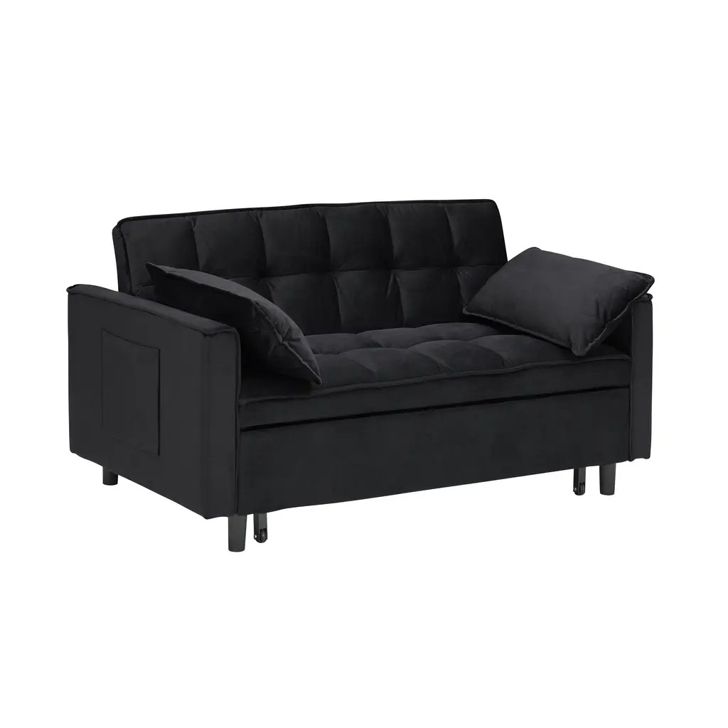 Black 55" Love Seat Futon Couches W/adjustable Backrest & Pullout Bed - Black