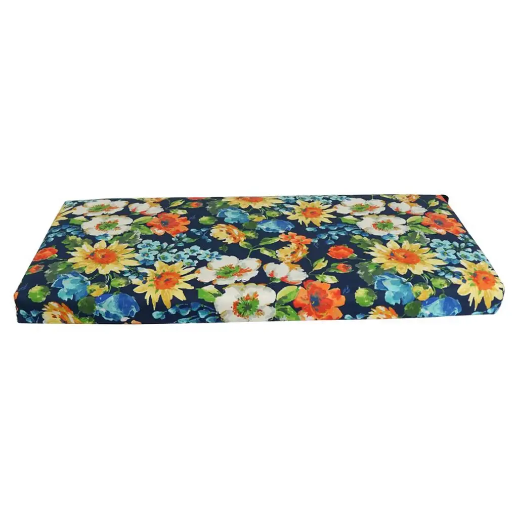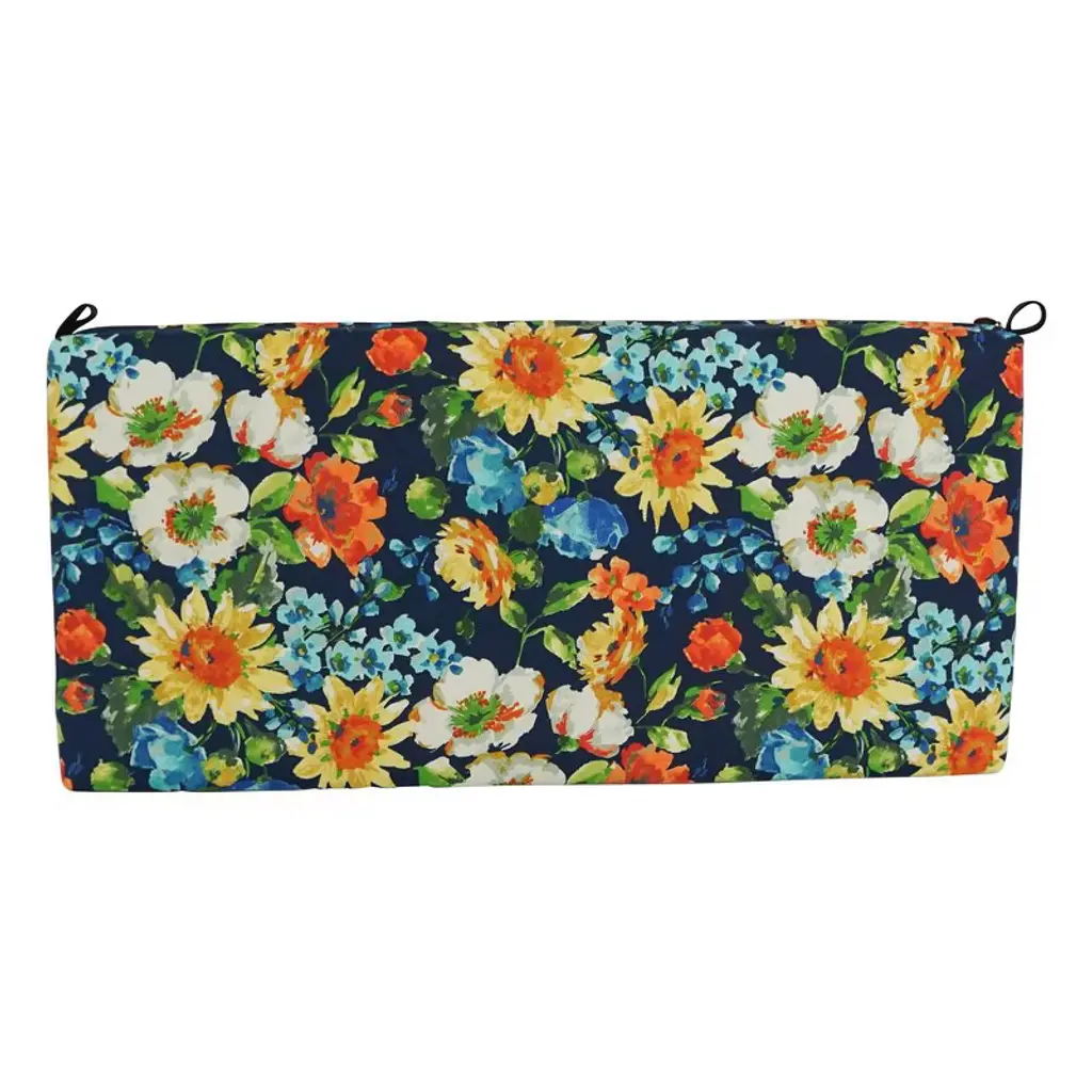 Add touch of comfort and style to your outdoor furnishings with the Outdoor Spun Poly Bench Cushion. This bench cushion features contruction of 100 percent spun polyester fabric. It comes with velcro ties and zippered closure. Made when ordered.
