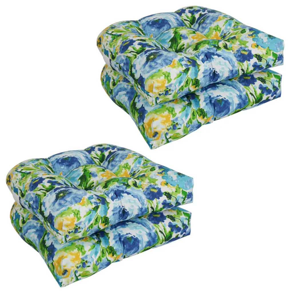 Blazing Needles, Square Spun Polyester Outdoor Tufted Settee Cushions (Set Of 3)