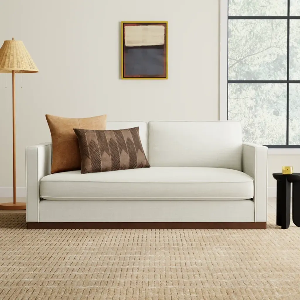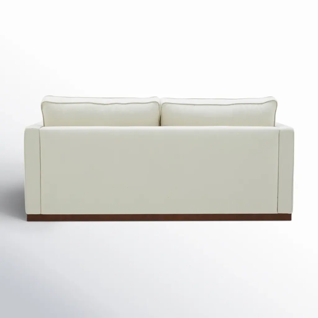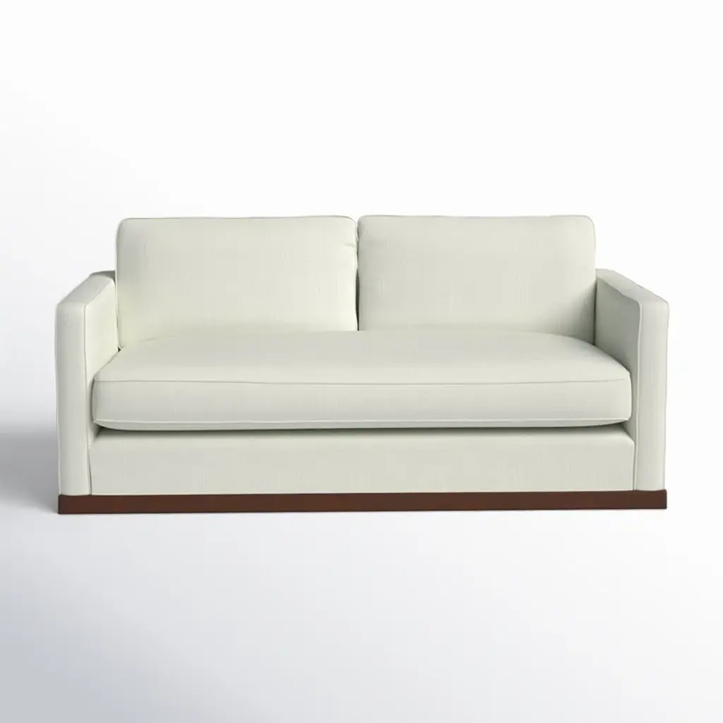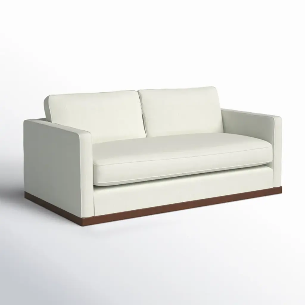 Seating, squared. Instantly update your living space with a cozy upholstered loveseat that accommodates two people. The wooden frame is wrapped in performance fabric, while blended cushions and sinuous springs offer comfort and support as you relax with your favorite TV series. The covers are removable as needed for hassle-free cleaning.