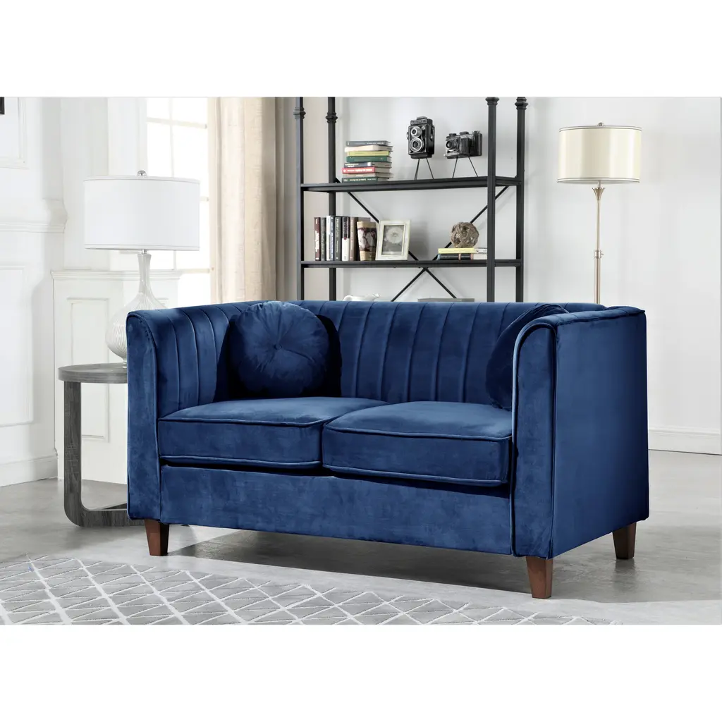 Elevate your home decor with the Boton Chesterfield Loveseat. With its classic design and timeless appeal, this loveseat is a perfect fit for any living space. Its solid wood frame and legs provide sturdiness while the soft velvet upholstery offers comfort and luxury. The pleated design adds a touch of elegance, and the included bolster pillows complete the look.Features: