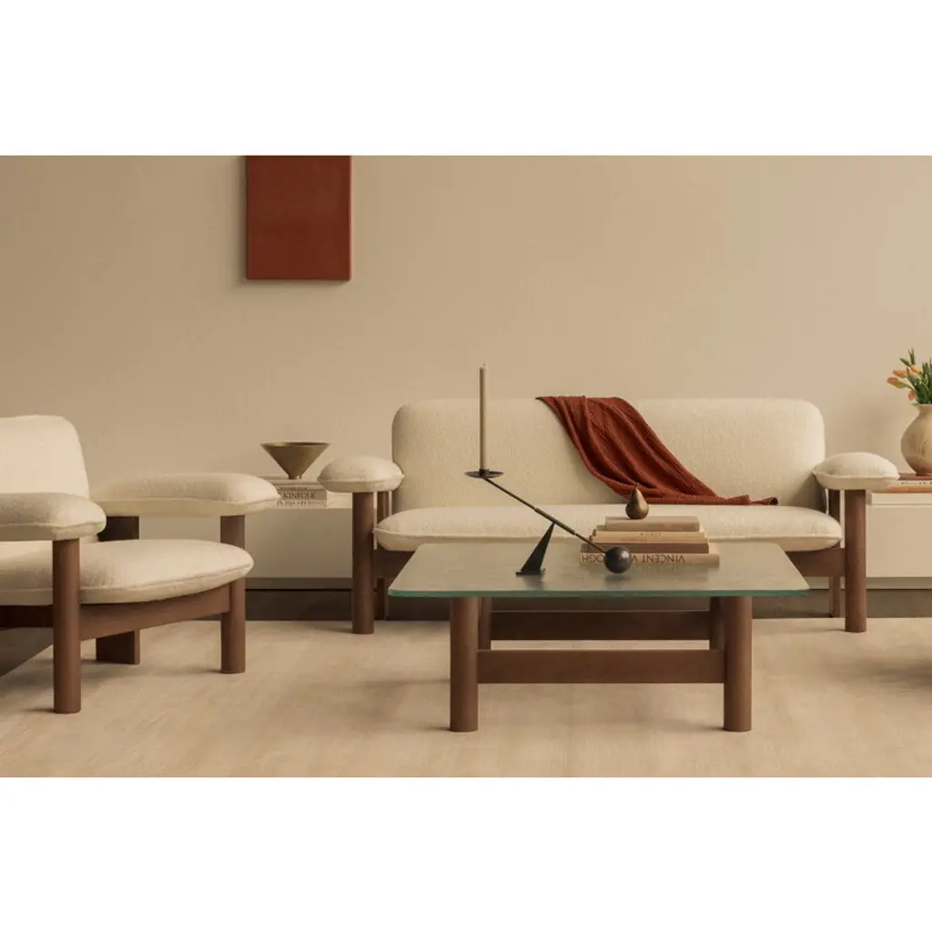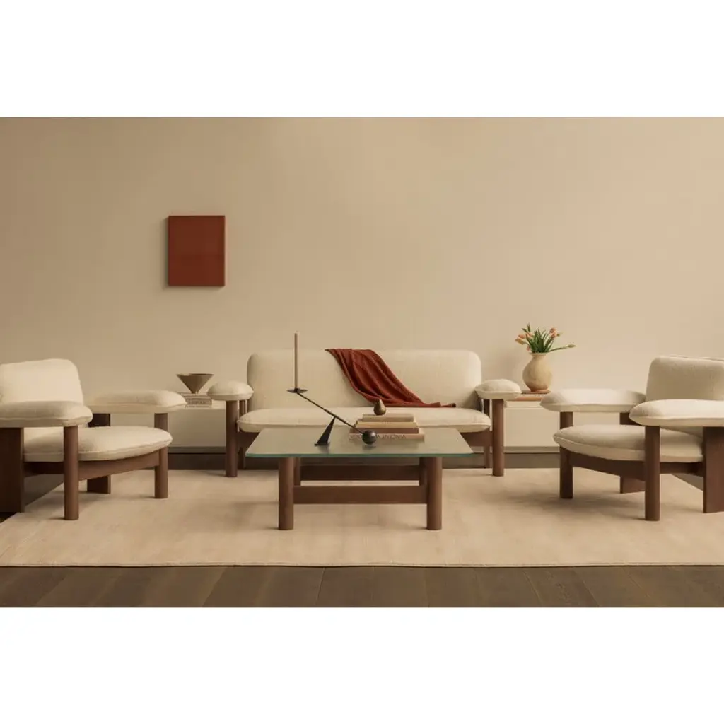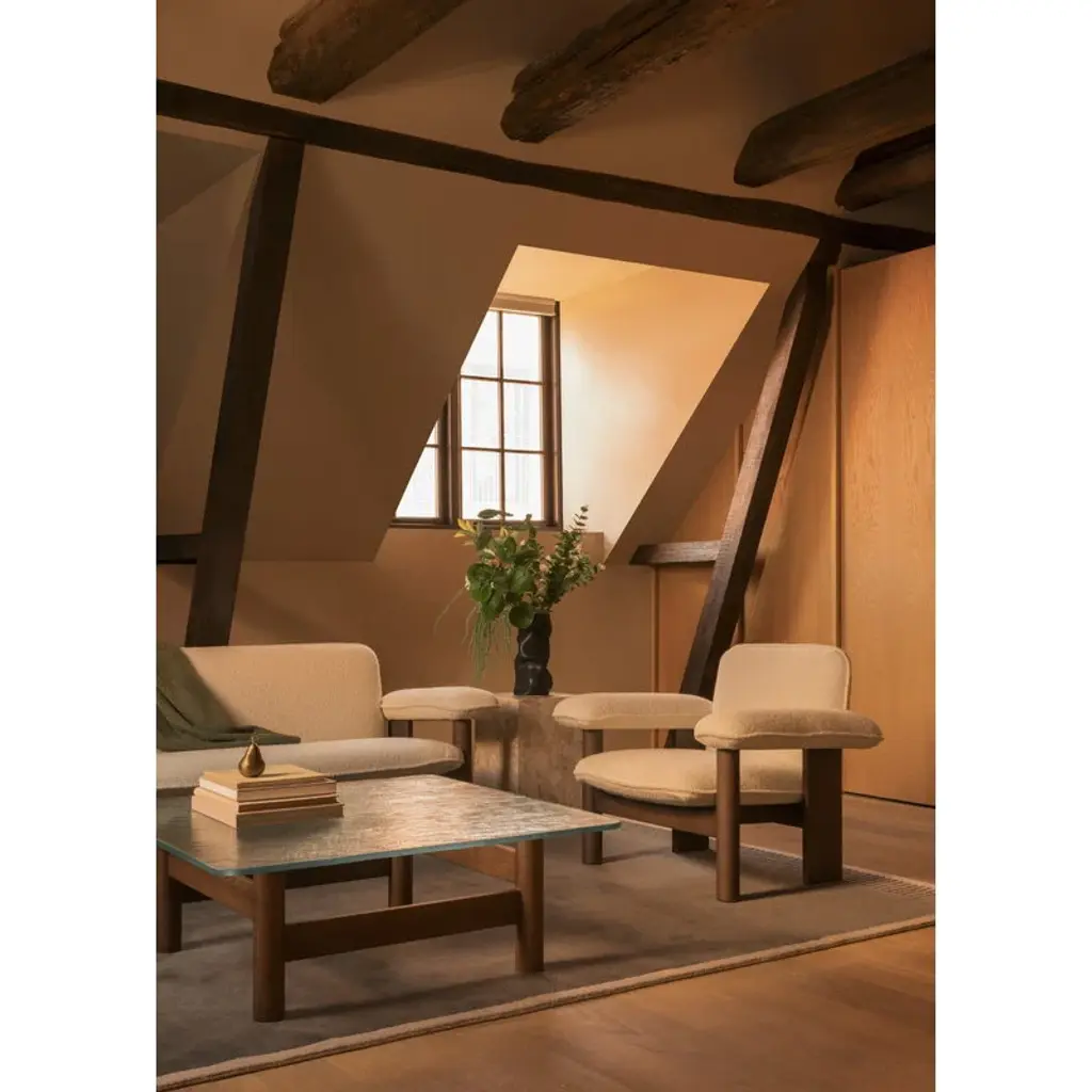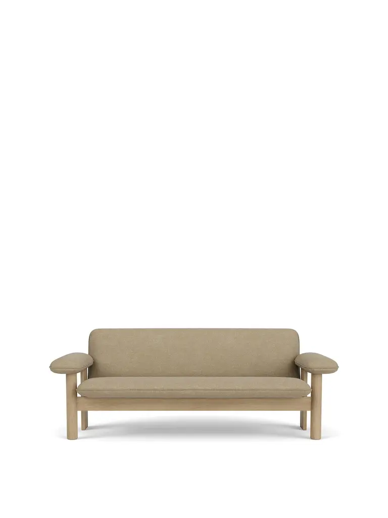 Audo Copenhagen’s Brasilia sofa delights with its organic feel and soft lines. Designed by Anderssen & Voll, the 2-seater sofa features a solid wood frame made with traditional joinery and generous, upholstered cushioning on the seat and armrests. The combination of rounded front legs and rectangular back legs gives the Brasilia sofa a nice geometric touch. The name of the Brasilia collection refers to Brazilian modernism, the esthetics of which Anderssen & Voll have paired with Nordic mid-century design. Thanks to the sleek appearance and relatively low backrest, the Brasilia sofa looks equally great in the corner of a reading nook corner, in front of the television as well as in the middle of the room. You can pair the lounge chair with a matching ottoman or coffee table from the same collection.