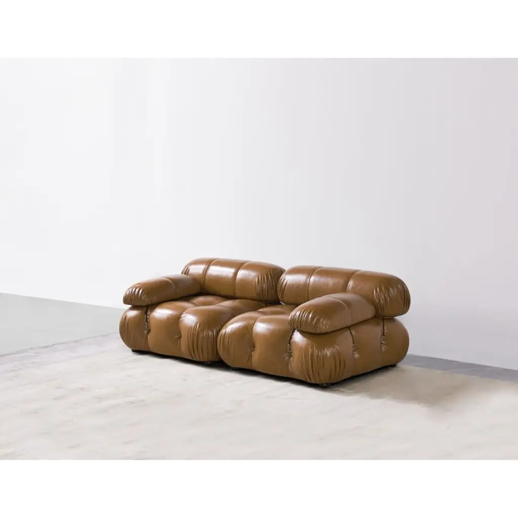 This Loveseat is crafted using an innovative system comprised of cables, hooks, and rings, which imbue it with its distinct look and modular design. Its seats, backs, and armrests are built around a foundation of injection foam and wood frames. The padding consists of polyurethane in multiple densities and firmness levels, with intricately shaped layers working together to produce a comfortable, spring-like effect. This engineering marvel not only ensures exceptional comfort but also enables the sofa's interior to be disassembled, facilitating easy recycling. Furthermore, this sofa features a versatile reversible ottoman, offering flexibility in placement—whether positioned at the center of the seating arrangement or alongside, catering to diverse preferences and spatial configurations with ease. Features Removable Armrests and Backrests Easy to assemble, only the armrest and backrest need to assemble by a hook lock Durable and pet-friendly microfiber designed for lasting wear and tear. filled with premium high-density sponge and soft cotton only, bottom with a wood frame Each piece can be easily rearranged and reconfigured