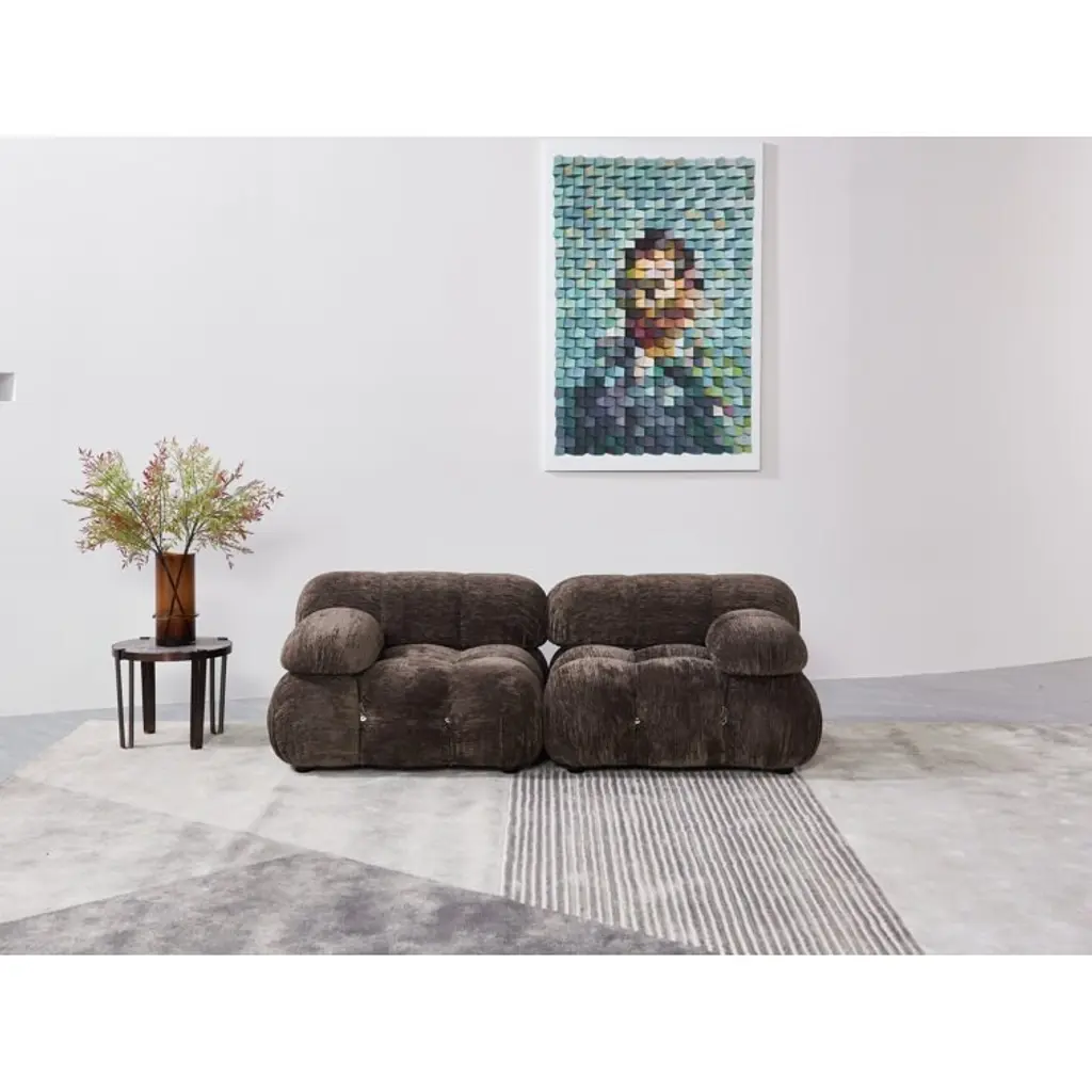 This Loveseat is crafted using an innovative system comprised of cables, hooks, and rings, which imbue it with its distinct look and modular design. Its seats, backs, and armrests are built around a foundation of injection foam and wood frames. The padding consists of polyurethane in multiple densities and firmness levels, with intricately shaped layers working together to produce a comfortable, spring-like effect. This engineering marvel not only ensures exceptional comfort but also enables the sofa's interior to be disassembled, facilitating easy recycling. Furthermore, this sofa features a versatile reversible ottoman, offering flexibility in placement—whether positioned at the center of the seating arrangement or alongside, catering to diverse preferences and spatial configurations with ease. Features Removable Armrests and Backrests Easy to assemble, only the armrest and backrest need to assemble by a hook lock Luxury Chenille Fabric filled with premium high-density sponge and soft cotton only, bottom with a wood frame Each piece can be easily rearranged and reconfigured