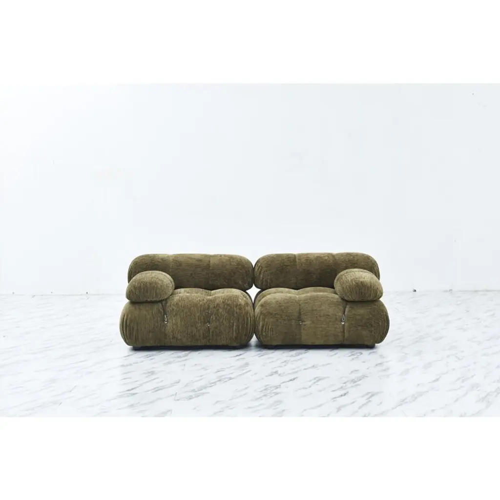 This Loveseat is crafted using an innovative system comprised of cables, hooks, and rings, which imbue it with its distinct look and modular design. Its seats, backs, and armrests are built around a foundation of injection foam and wood frames. The padding consists of polyurethane in multiple densities and firmness levels, with intricately shaped layers working together to produce a comfortable, spring-like effect. This engineering marvel not only ensures exceptional comfort but also enables the sofa's interior to be disassembled, facilitating easy recycling. Furthermore, this sofa features a versatile reversible ottoman, offering flexibility in placement—whether positioned at the center of the seating arrangement or alongside, catering to diverse preferences and spatial configurations with ease. Features Removable Armrests and Backrests Easy to assemble, only the armrest and backrest need to assemble by a hook lock Luxury Chenille Fabric filled with premium high-density sponge and soft cotton only, bottom with a wood frame Each piece can be easily rearranged and reconfigured