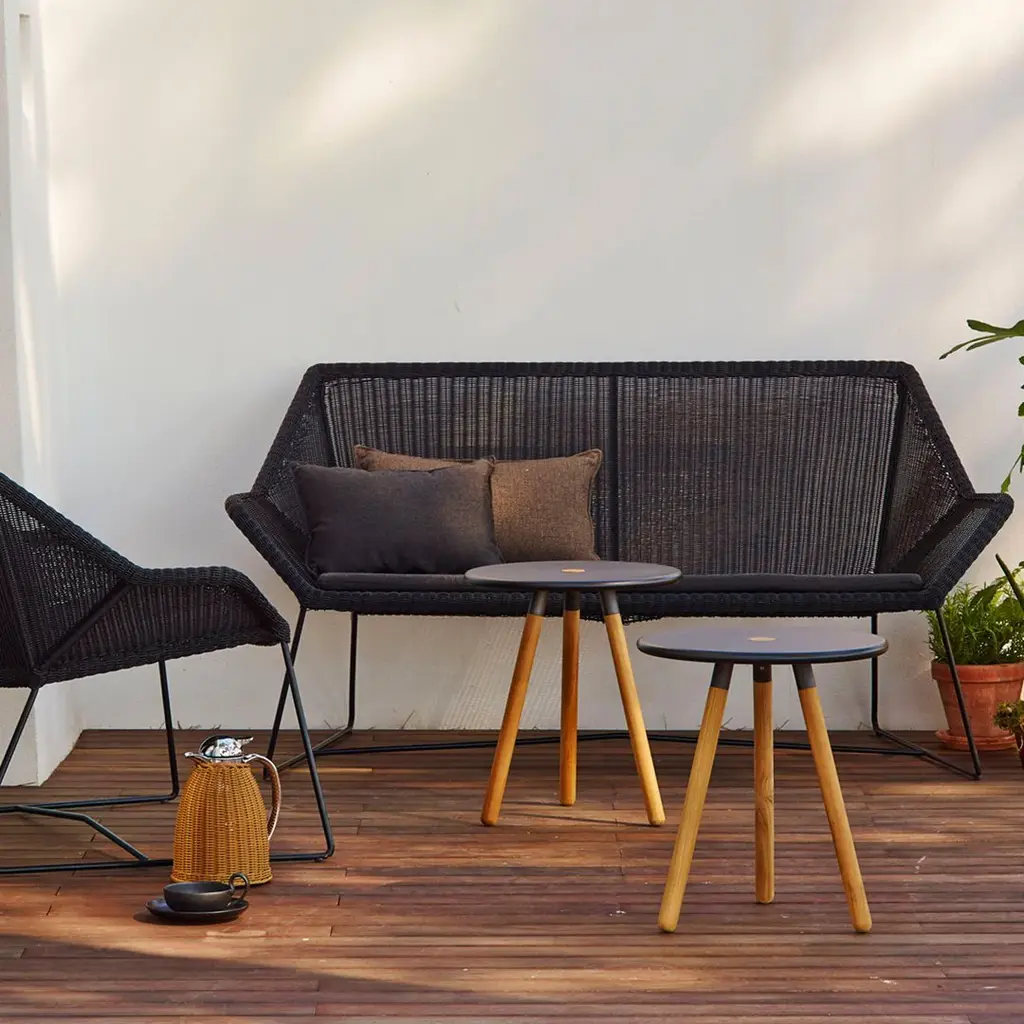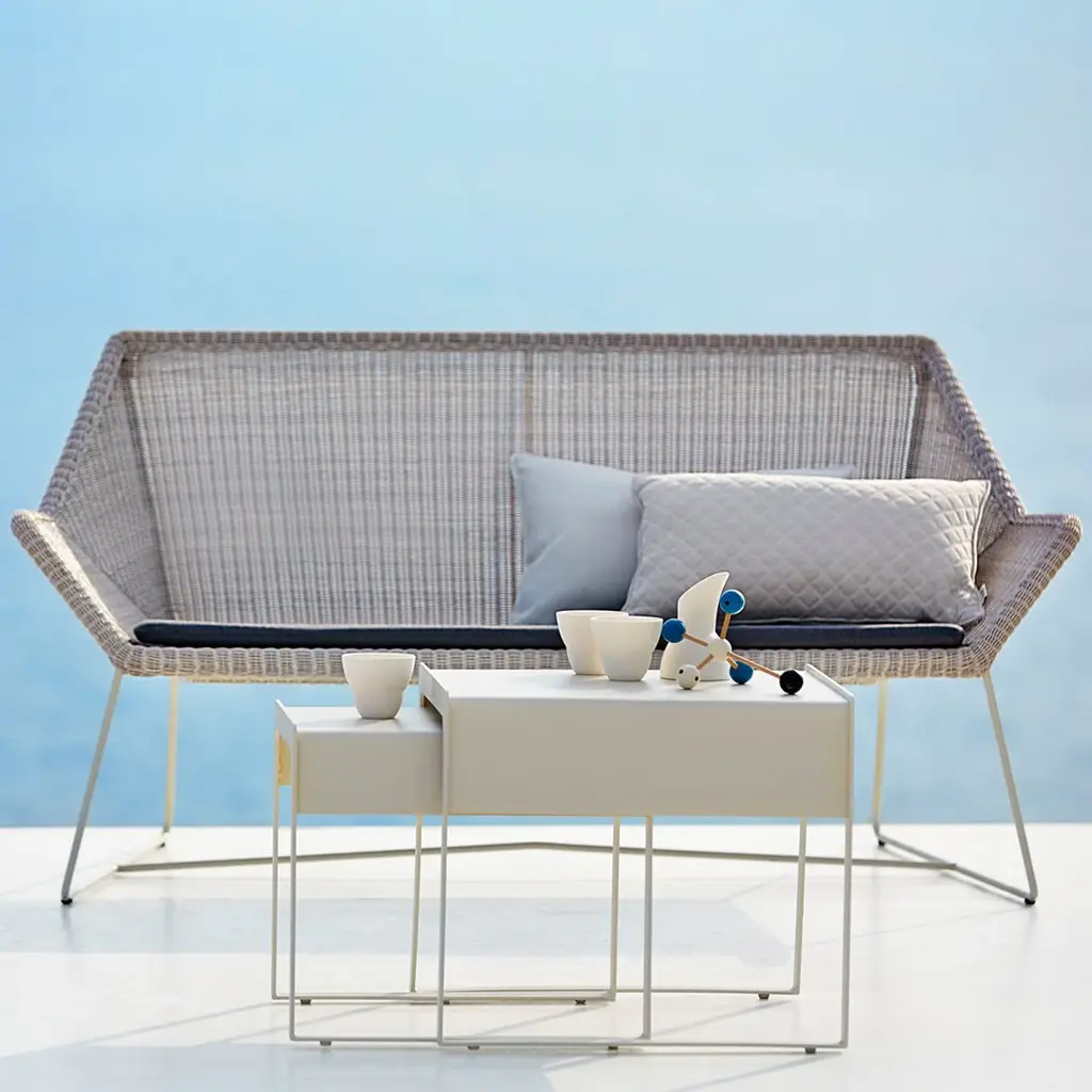 The popular Breeze range welcomes an attractive new sofa to the family –designed for two. The Breeze two-seater sofa is a natural extension of the light and stylish Breeze collection. The two-seater Breeze sofa has inherited the elegance, lightness and look of the original Breeze products. The Breeze two-seater sofa can be used as a stand-alone item in places where you wish to unwind and relax, in combination with the other Breeze chairs, or as a mix-and-match sofa combined with other Cane-line products. The Breeze two-seater sofa is available in black and white-grey Cane-line weave with seat cushions in a range of colours. The Breeze two-seater sofa is designed by Strand+Hvass. Note: Frame and cushion may be shipped separately and lead times may vary. Please contact us for more information.