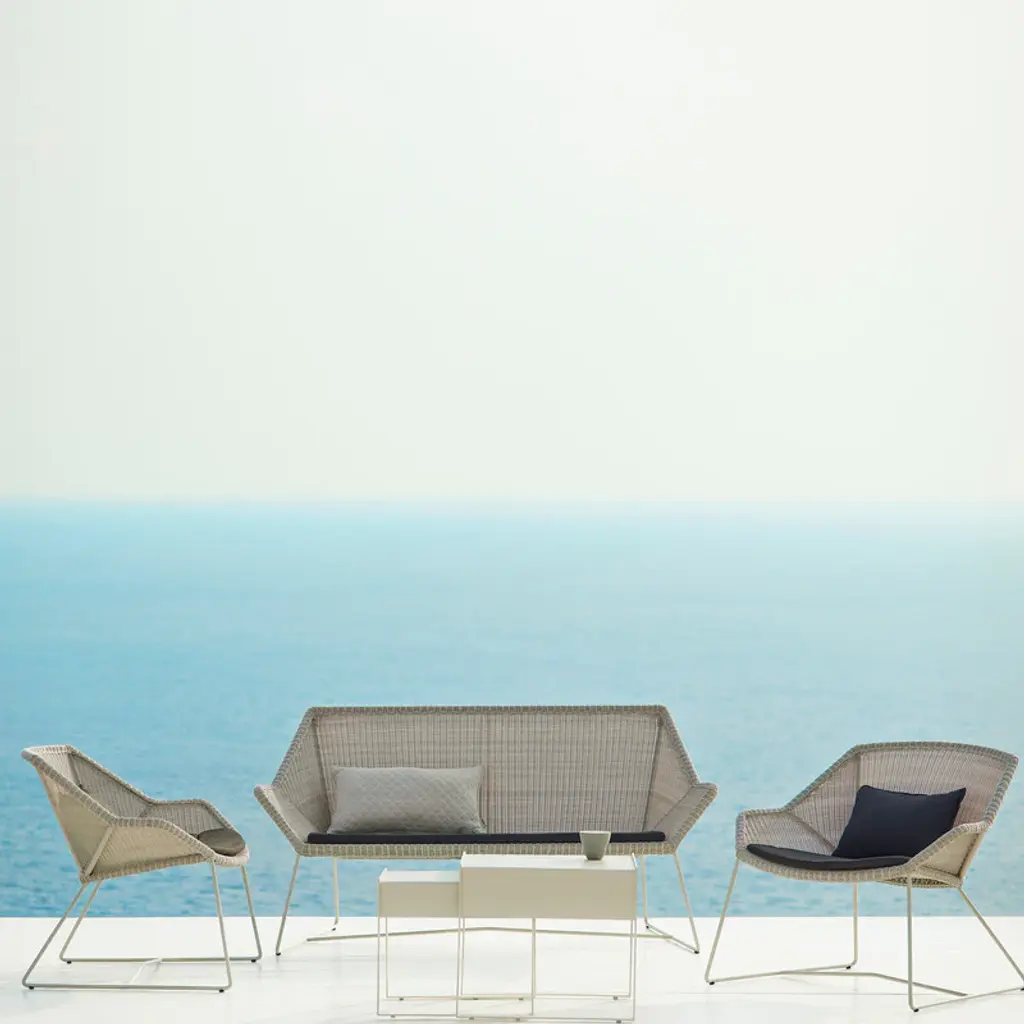 From the minds of designers Strand+Hvass the Breeze 2 Seater Lounge Sofa from Cane-line brings comfortable, sculptural beauty to your favorite al fresco relaxation spaces. Demanding attention with its elegant lines and spacious seat, the Breeze Lounge Sofa is crafted from Cane-line Weave fiber and aluminum with cushions wrapped in Cane-line Nate or polypropylene. Precisely designed to be both lightweight and durable, while exuding pure elegance, this low-profile seating option can be left outside in all types of weather and requires little to no maintenance. Highlights Note: Cover available for purchase, please call Sales (888) 222-4410.