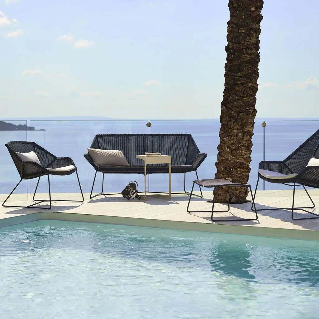 From the minds of designers Strand+Hvass the Breeze 2 Seater Lounge Sofa from Cane-line brings comfortable, sculptural beauty to your favorite al fresco relaxation spaces. Demanding attention with its elegant lines and spacious seat, the Breeze Lounge Sofa is crafted from Cane-line Weave fiber and aluminum with cushions wrapped in Cane-line Nate or polypropylene. Precisely designed to be both lightweight and durable, while exuding pure elegance, this low-profile seating option can be left outside in all types of weather and requires little to no maintenance. Highlights Note: Cover available for purchase, please call Sales (888) 222-4410.