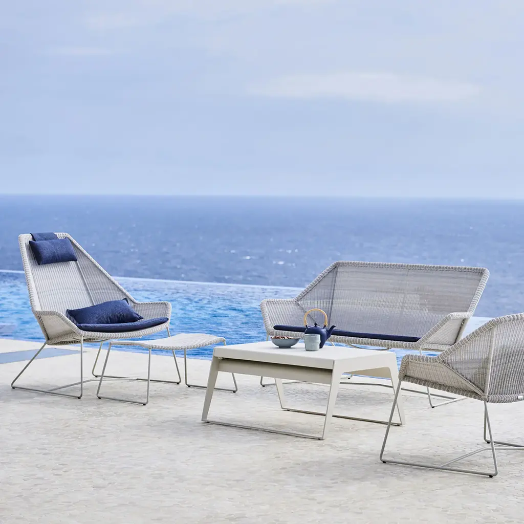 From the minds of designers Strand+Hvass the Breeze 2 Seater Lounge Sofa from Cane-line brings comfortable, sculptural beauty to your favorite al fresco relaxation spaces. Demanding attention with its elegant lines and spacious seat, the Breeze Lounge Sofa is crafted from Cane-line Weave fiber and aluminum with cushions wrapped in Cane-line Nate or polypropylene. Precisely designed to be both lightweight and durable, while exuding pure elegance, this low-profile seating option can be left outside in all types of weather and requires little to no maintenance. Highlights Note: Cover available for purchase, please call Sales (888) 222-4410.
