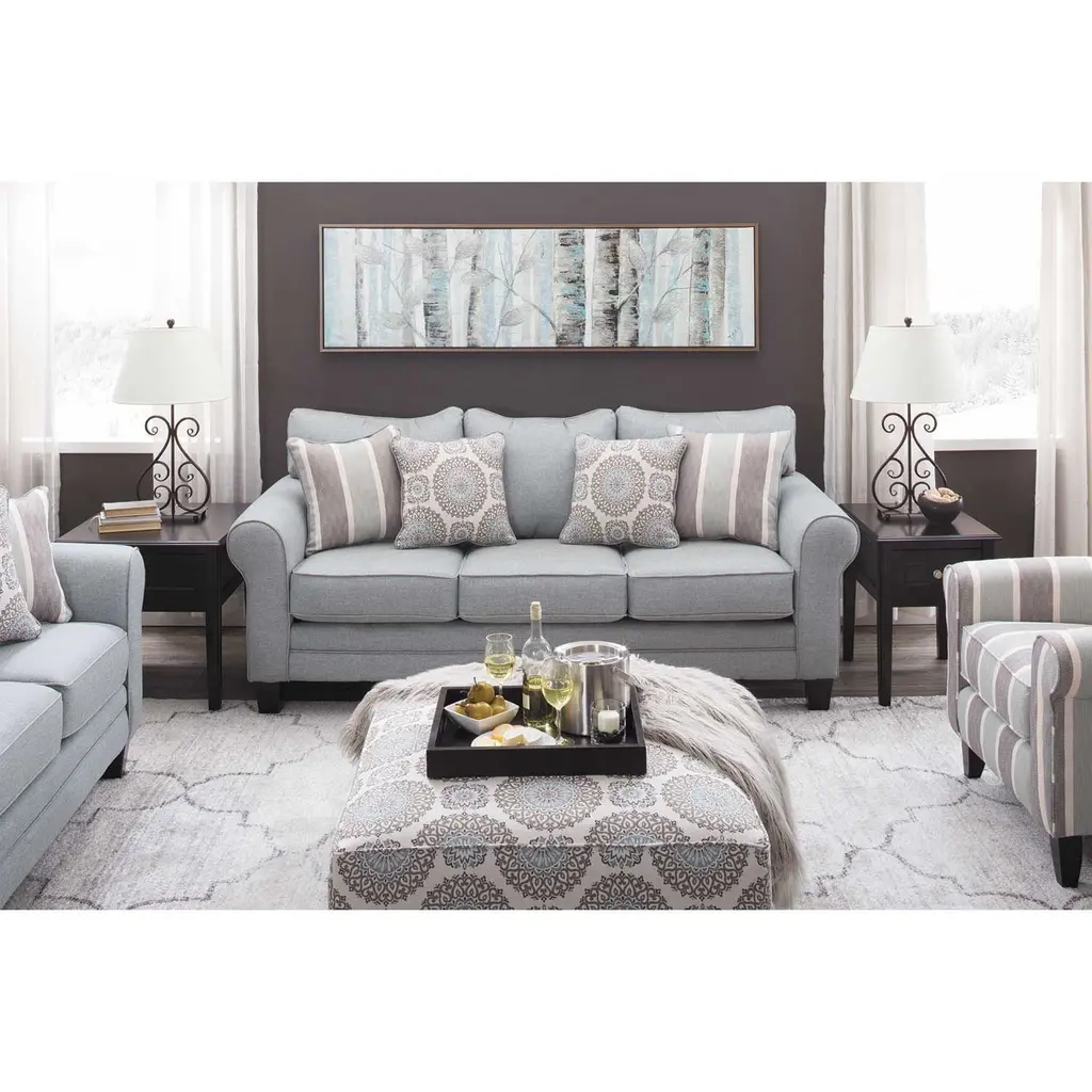 Create an atmosphere of sophisticated calm with the Brianne Mist Loveseat by Fusion Furniture.