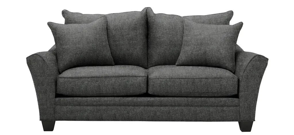 Perusing for the perfect sofa? Look no further than this attractive Briarwood sofa in a size that's designed with apartments and small spaces in mind. It will enrich your living room with its clean lines and dark wood. Plus, the sofa's 100% polyester microfiber fabric is perfect for families because it's soft, extremely stain resistant and easy to clean.