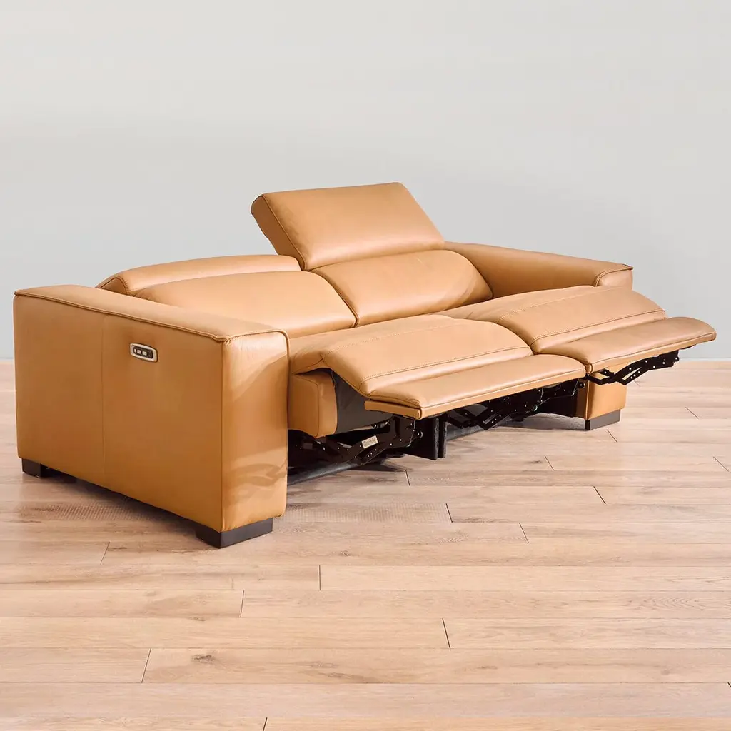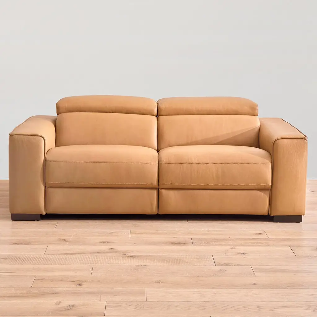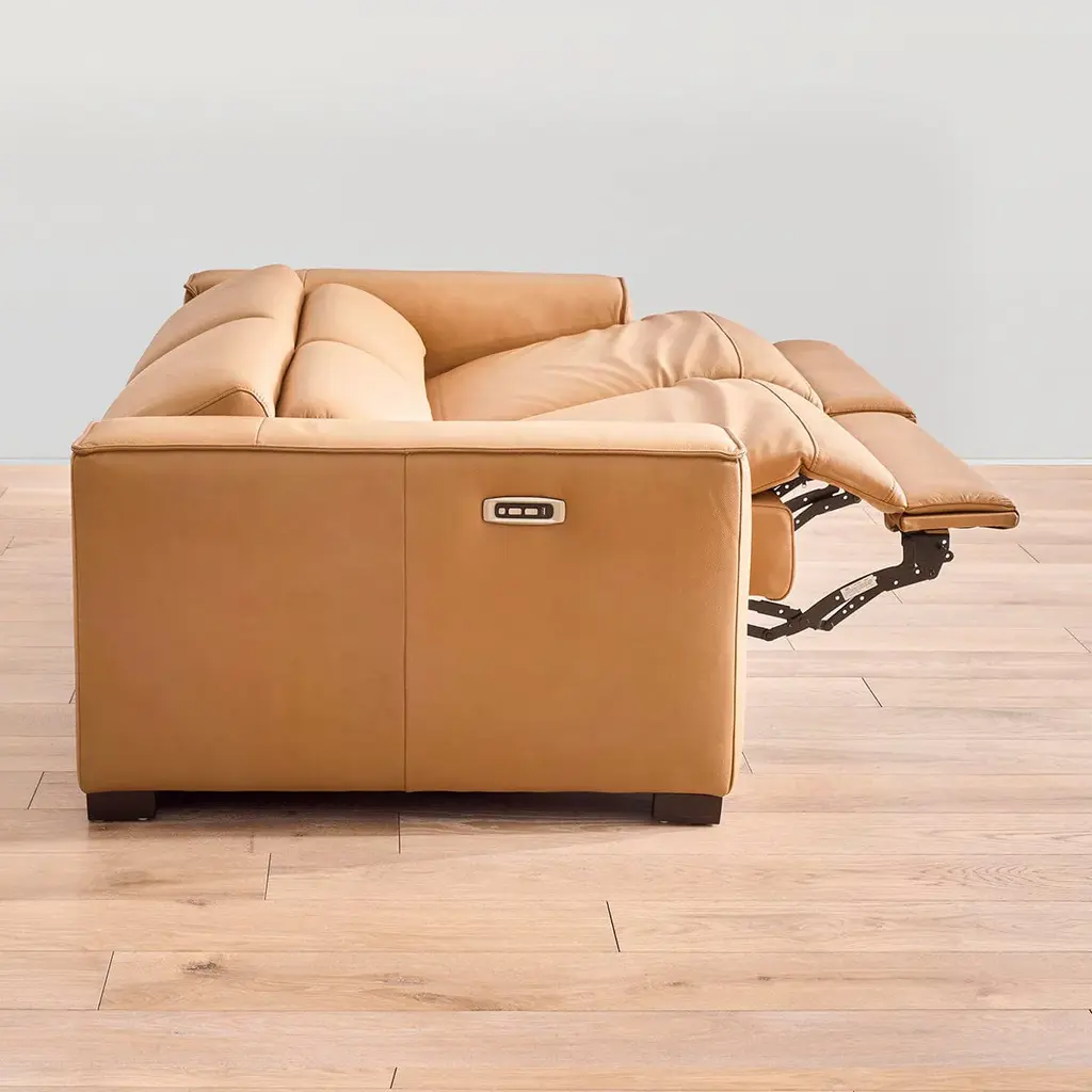 Designed for sink-in comfort and ultimate versatility, the modular Brix Collection lets you create a custom configuration for your space, while ultra-plush seating and buttery-soft leather in a buckskin hue enhance any setting. The modular loveseat includes the Power Recline Chair and Power Recliner for personalized comfort and a minimalist silhouette.