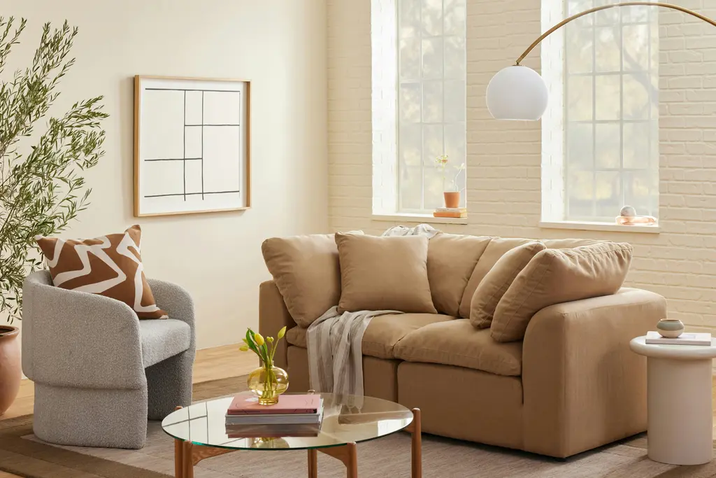 Relaxed modern style comes to life in this cushioned and customizable modular loveseat with a floating-on-air feel, now available in a smaller size, perfect for apartments! Reinvent your favorite room in your home with the Bryant Petite Modular Loveseat. Though minimal in its configuration, this two-piece design makes a big comfort and style statement.