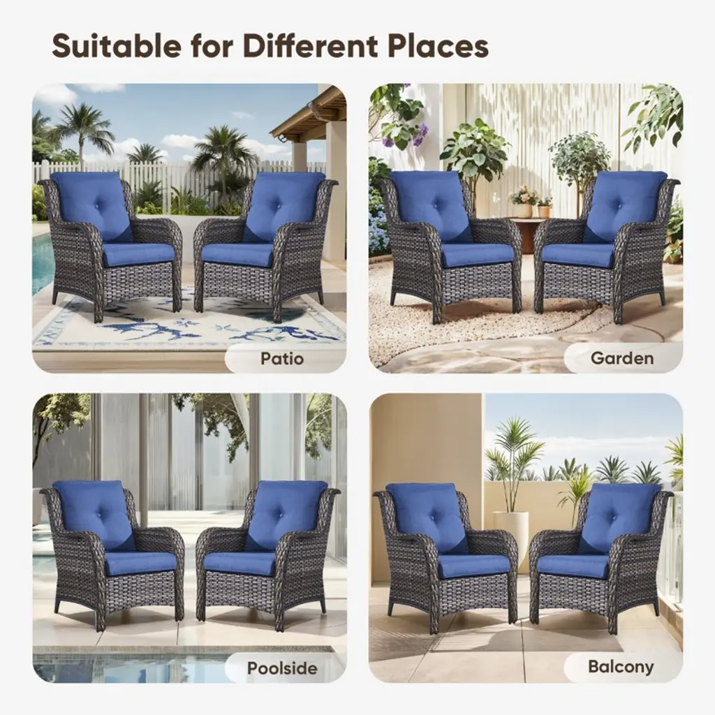 Upgrade your outdoor space with the Buenhomino 2-Piece Patio Furniture Set! These all-weather wicker chairs feature high-back support, 4-inch thick cushions, and a sturdy PE rattan & steel frame perfect for your deck, garden, or balcony. Durable, stylish, and built for comfort¡ªrelax in luxury!