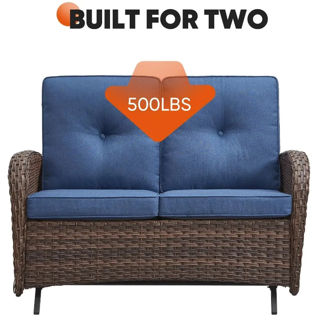 Relax in style with the Buenhomino Patio Loveseat Glider¡ªa durable, weather-resistant wicker glider sofa featuring plush cushions, smooth gliding motion, and ergonomic support. Perfect for gardens, balconies, or patios, this 500-lb capacity loveseat offers all-weather comfort for two. Upgrade your outdoor space today!