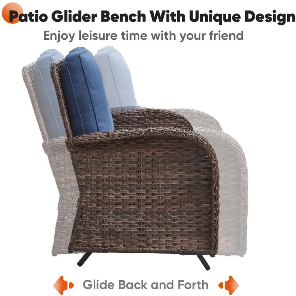 Buenhomino Patio Loveseat Glider Wicker Loveseat Rattan Glider Sofa With Curved Armrest Thicking Back & Seat Cushions For Garden Balcony Backyard