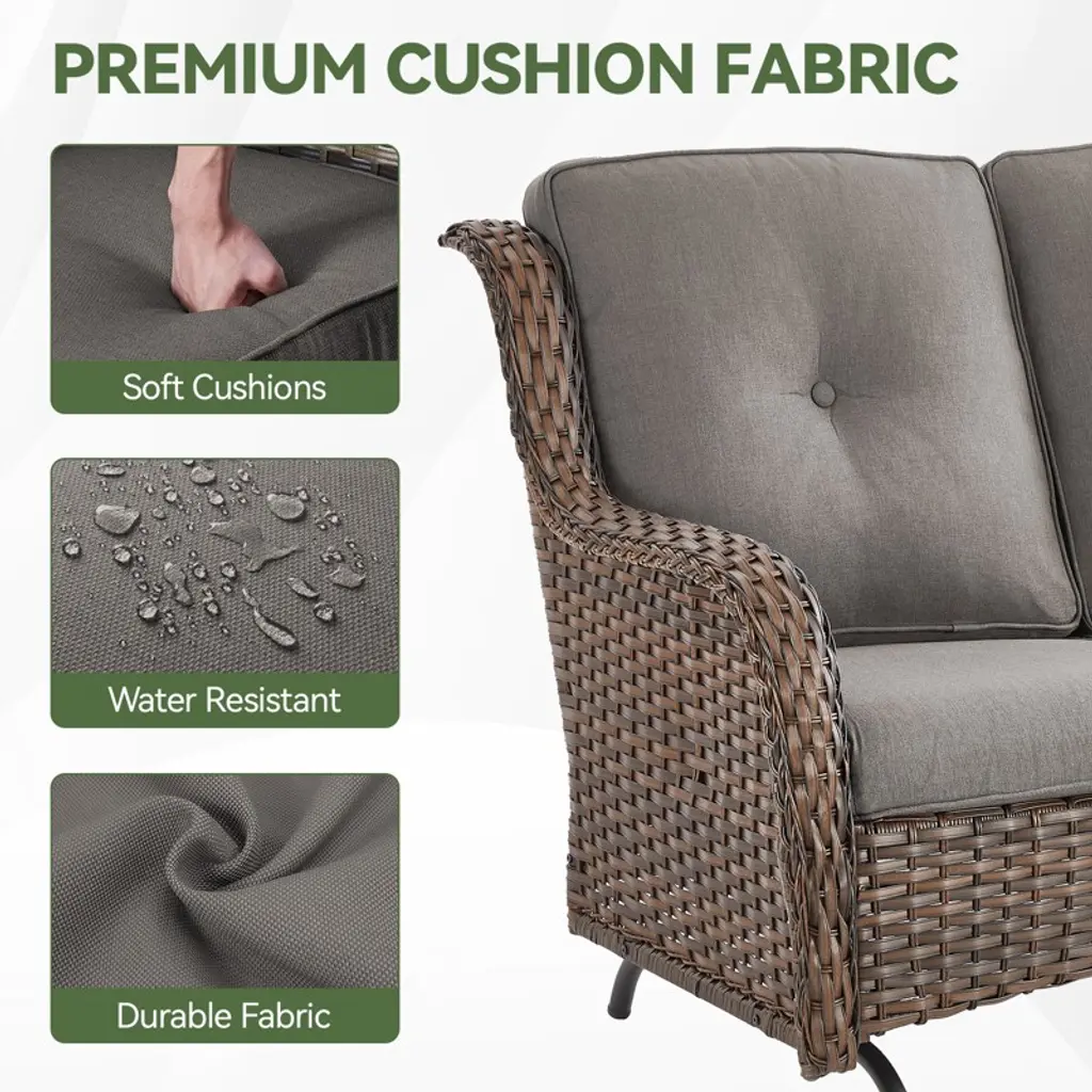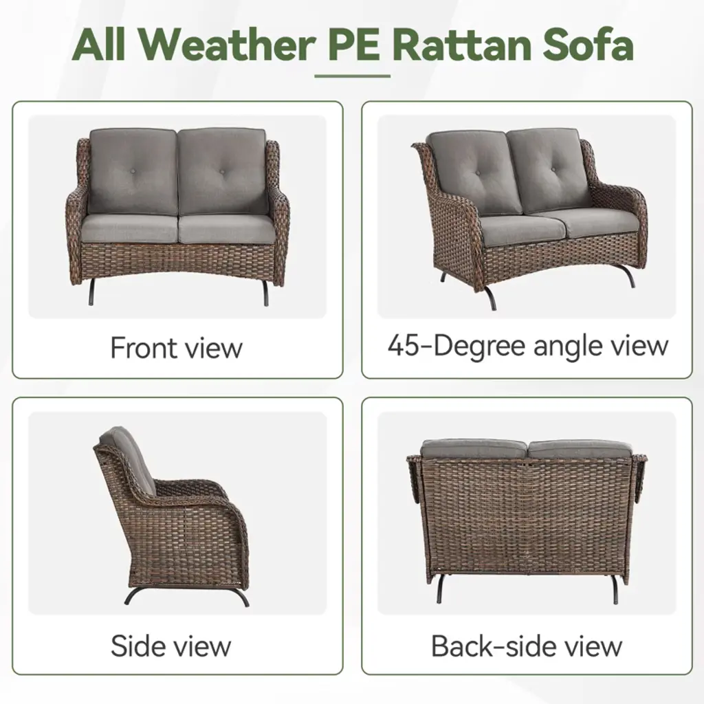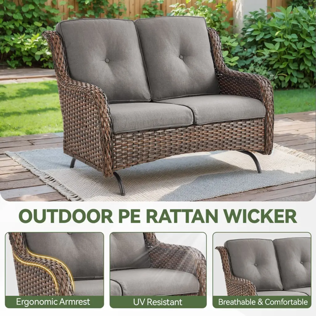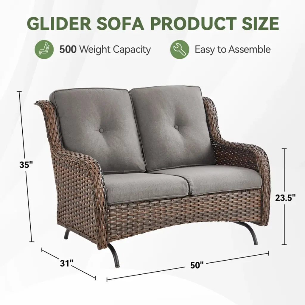 Relax in style with the Buenhomino Patio Loveseat Glider Sofa! This 2-seater wicker sofa features a smooth gliding motion, high-density cushions, and an ergonomic design for ultimate comfort. Built with all-weather PE wicker and a rust-proof steel frame, it¡¯s perfect for gardens, patios, or balconies. Supports up to 500 lbs,ideal for cozy moments outdoors!