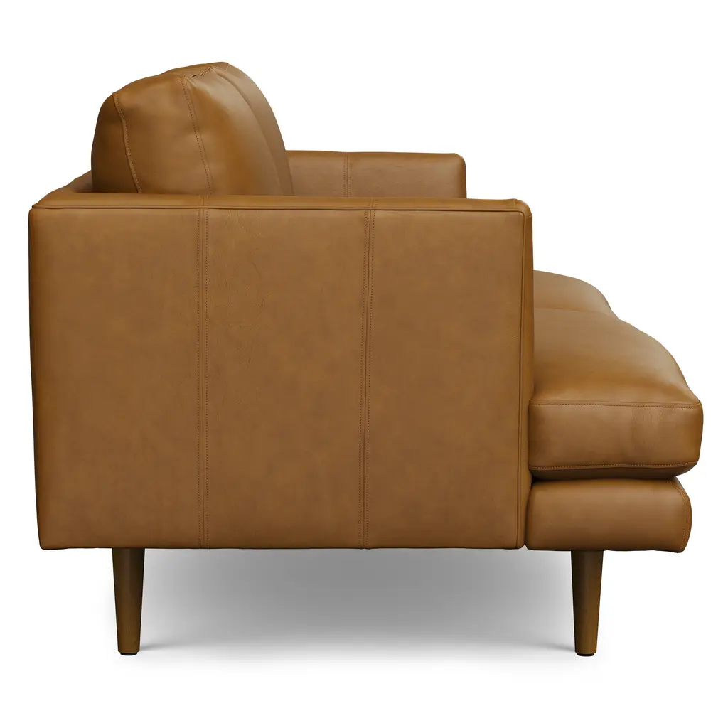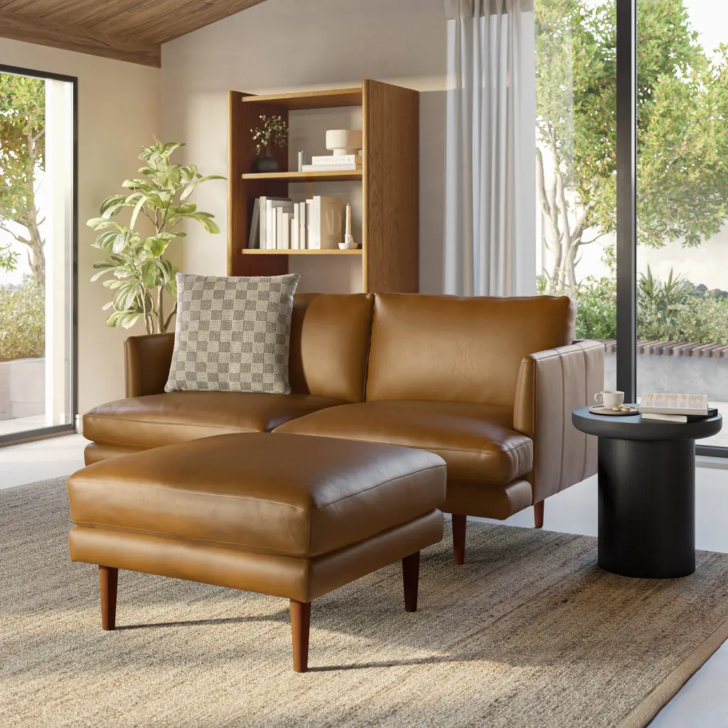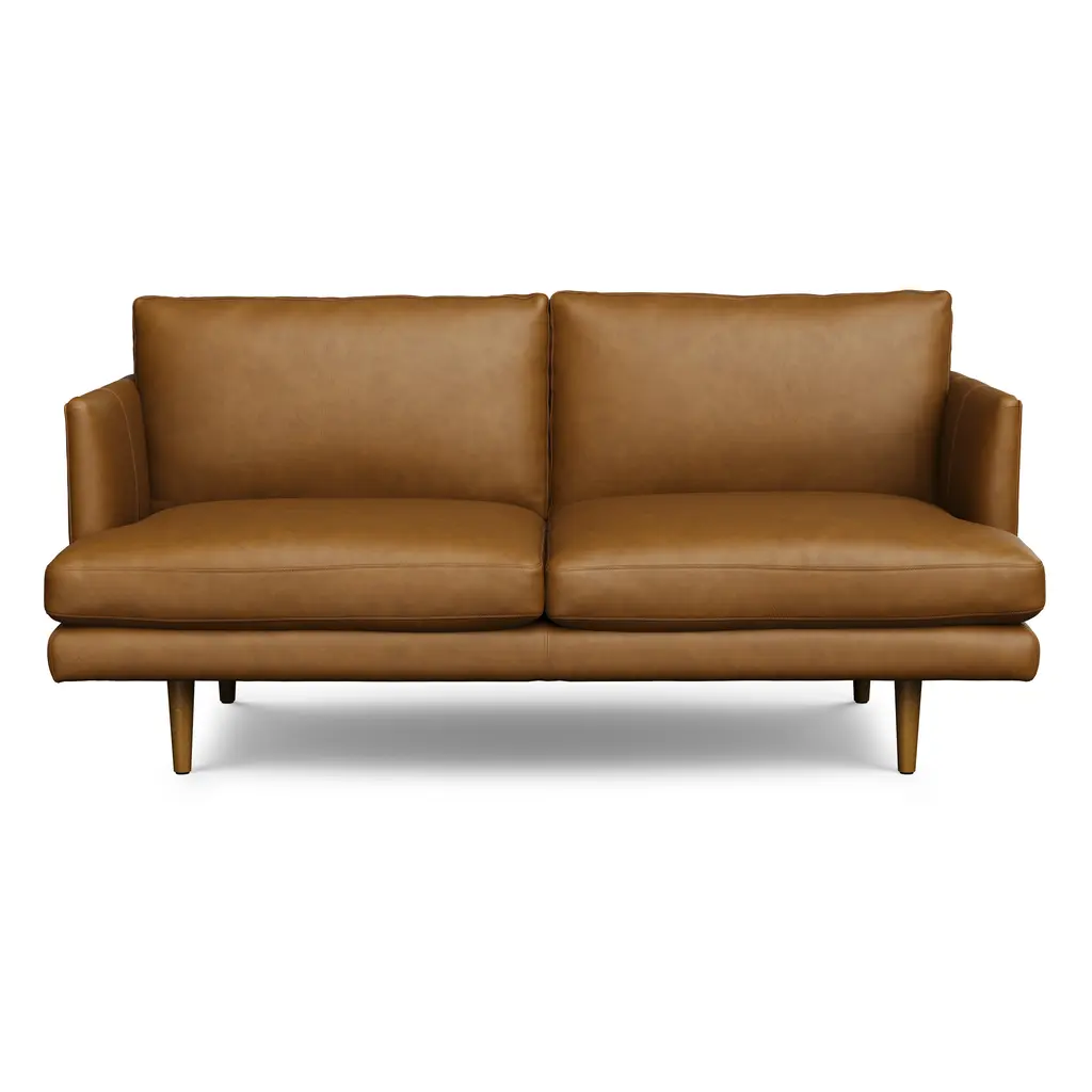 For those that love an angular mid-century look. Clean lines, slender arms and tapered legs give this loveseat a strong but airy presence. Deep seats with comfortable cushions make naps and lounging a no-brainer.