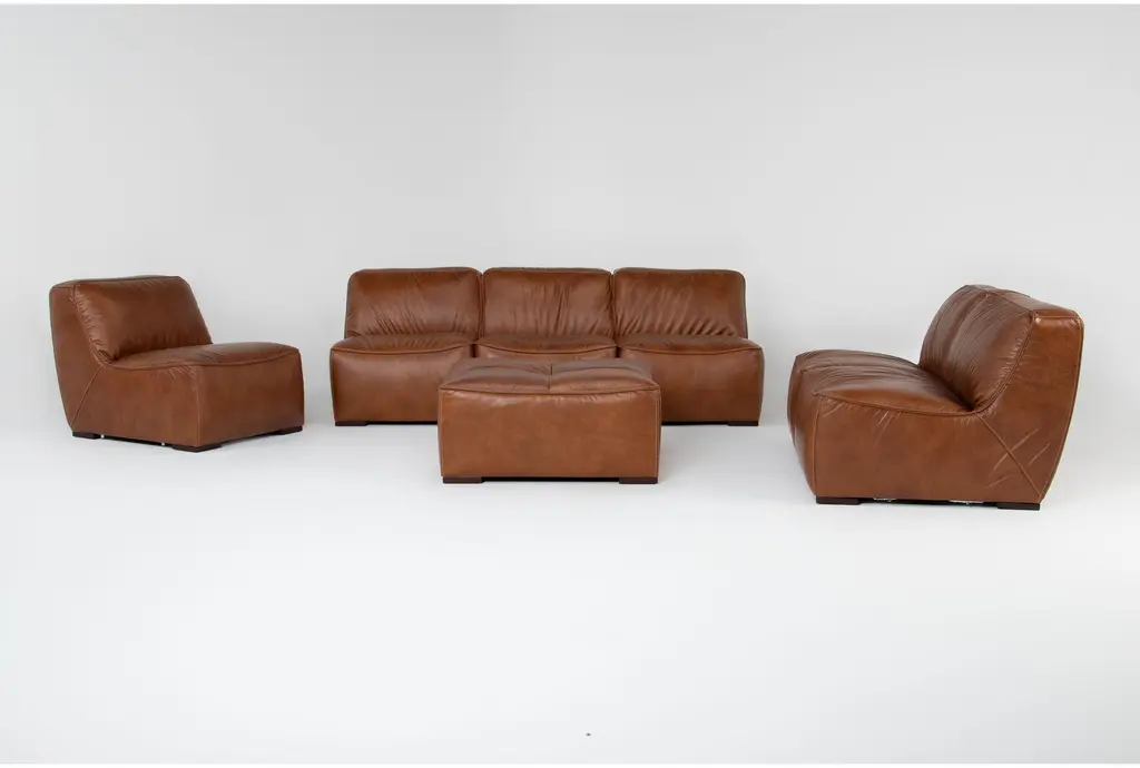 Burton Honey Brown Leather Armless Sofa Loveseat & Chair Set