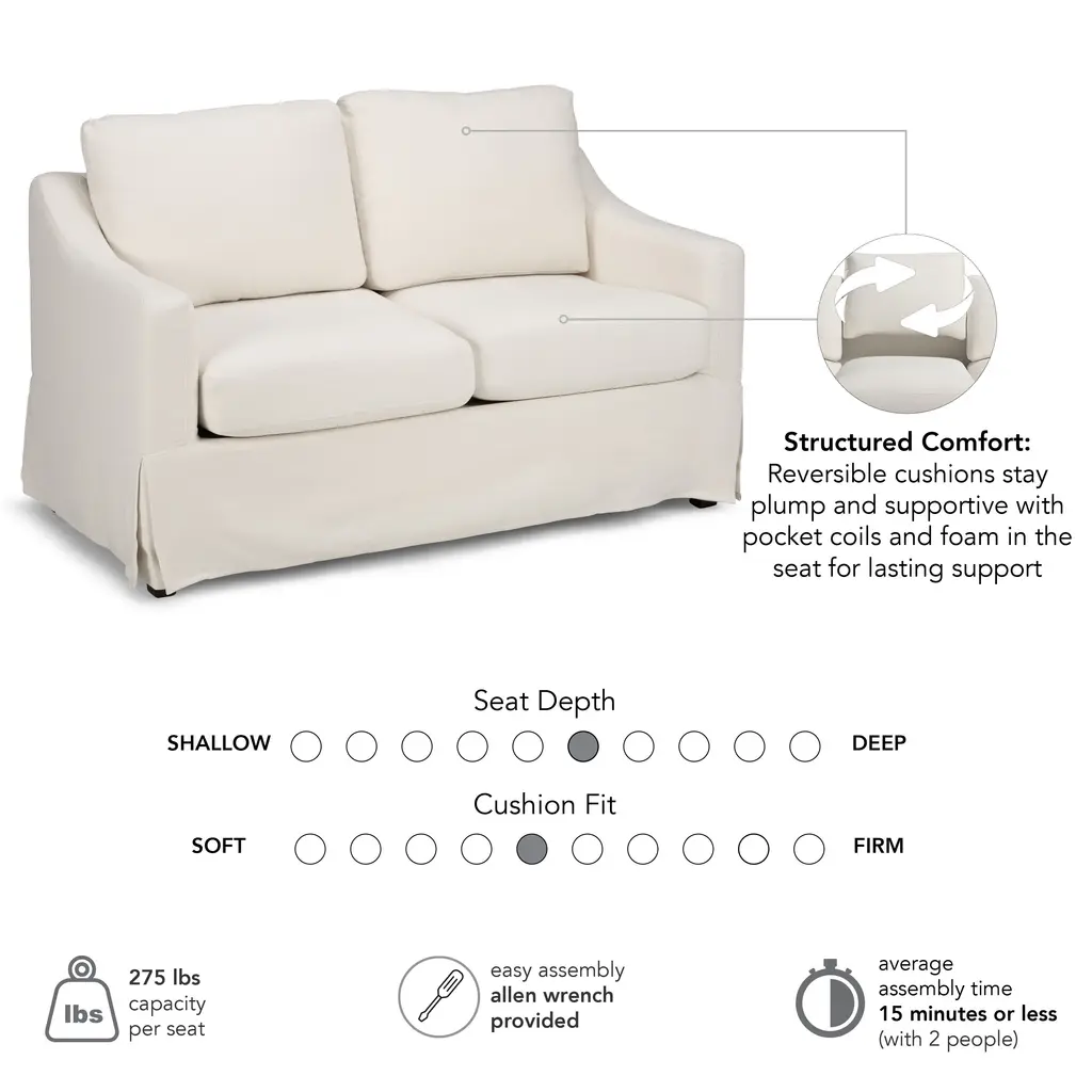 Bush Home Harper 57w Loveseat With Slipcover - 56.69" W X 30.2" D X 36.22" H - Ivory Basketweave Fabric