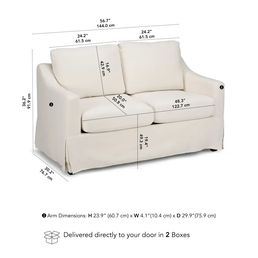 A cozy retreat for two — the Bush Home Harper 57W Loveseat with Slipcover blends inviting comfort with a timeless design that’s perfect for apartments, reading nooks, or any space that calls for relaxed sophistication. Its clean, classic silhouette is made to complement any décor, while deep, plush cushions make it impossible to resist sinking in. The removable slipcover completes the look with a soft, tailored finish that’s easy to remove, swap, and refresh whenever you like.