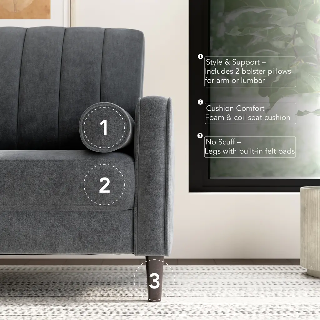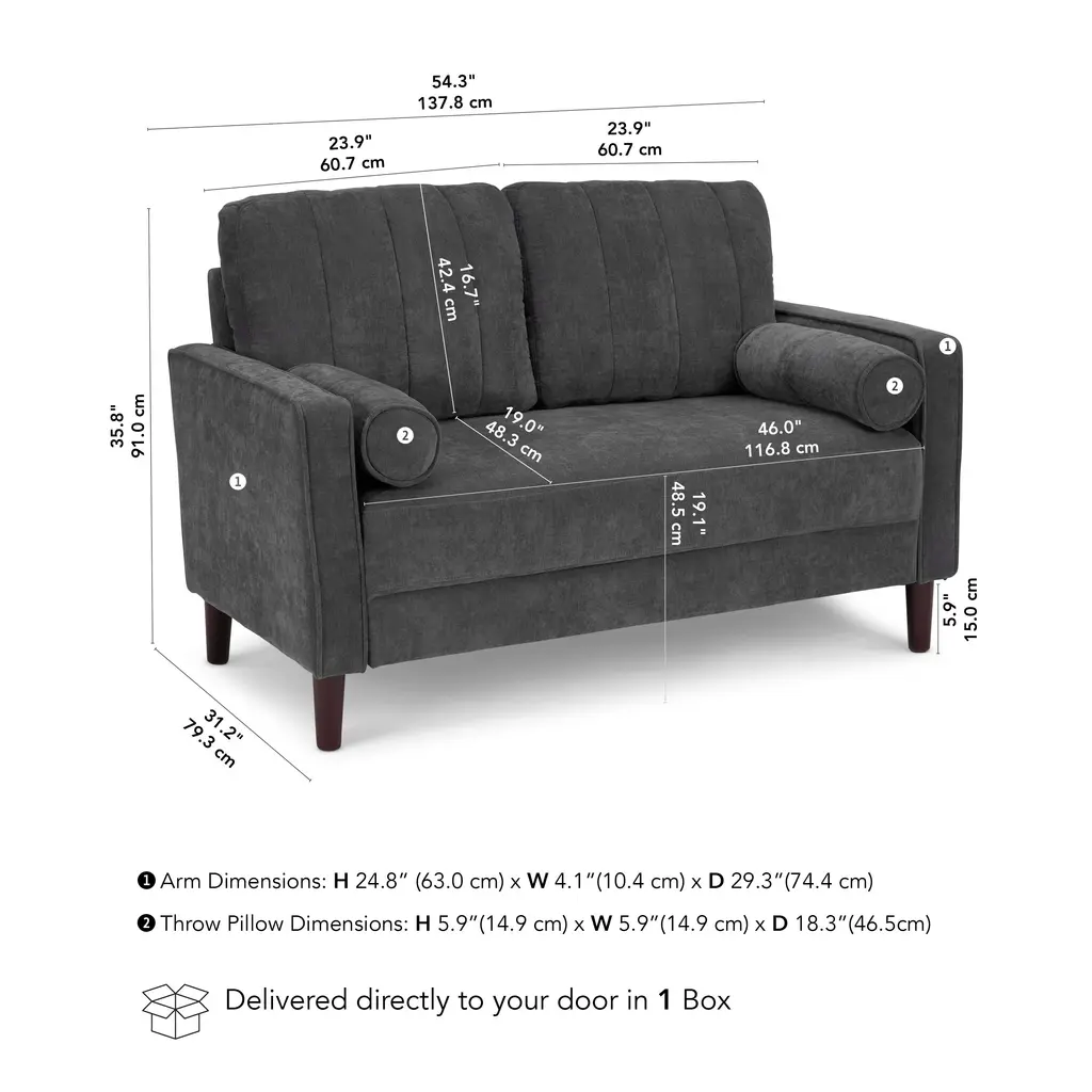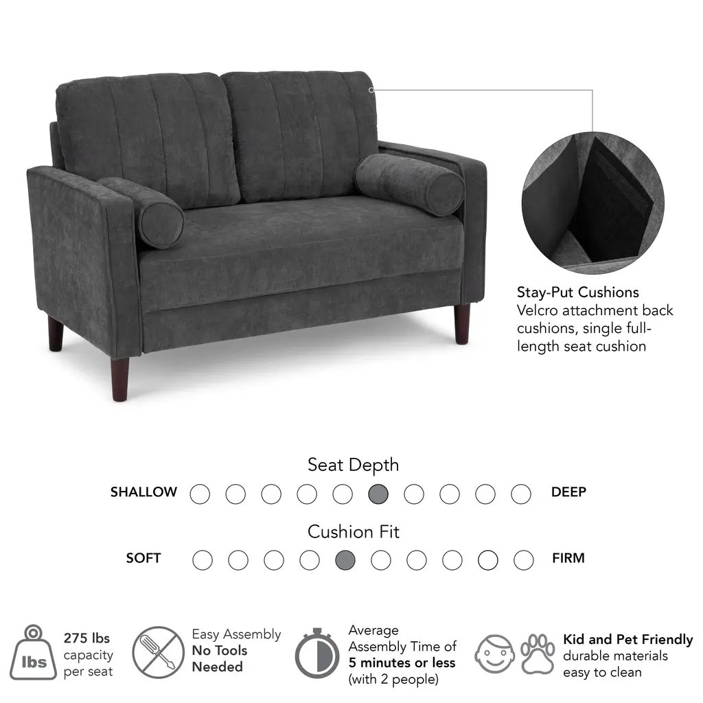 More than a place to sit — it’s where real moments happen. The Bush Home Max 54W Loveseat brings modern sophistication and inviting comfort together, featuring bold channel tufting, clean lines, and complementing rounded legs and bolster pillows for a striking yet timeless look. Overstuffed cushions offer that sink‐in feel, while a sinuous spring foundation and pocket coils in the seat ensure the perfect balance of softness and support. Whether you're curling up with a book or catching up with someone special, this loveseat is designed for the moments that make home feel like home. Pair it with other Max Collection pieces for a perfectly coordinated space that blends style and comfort seamlessly.
