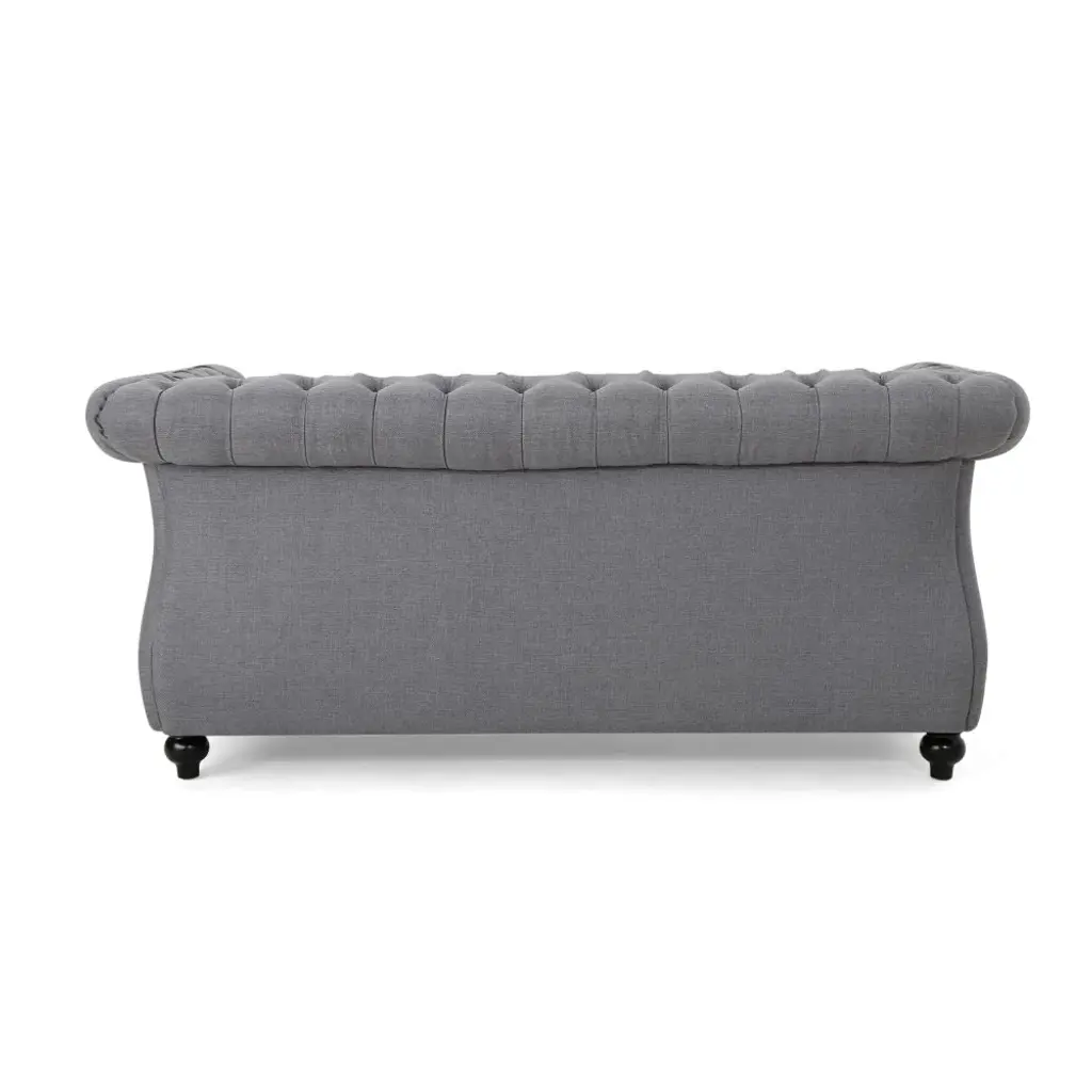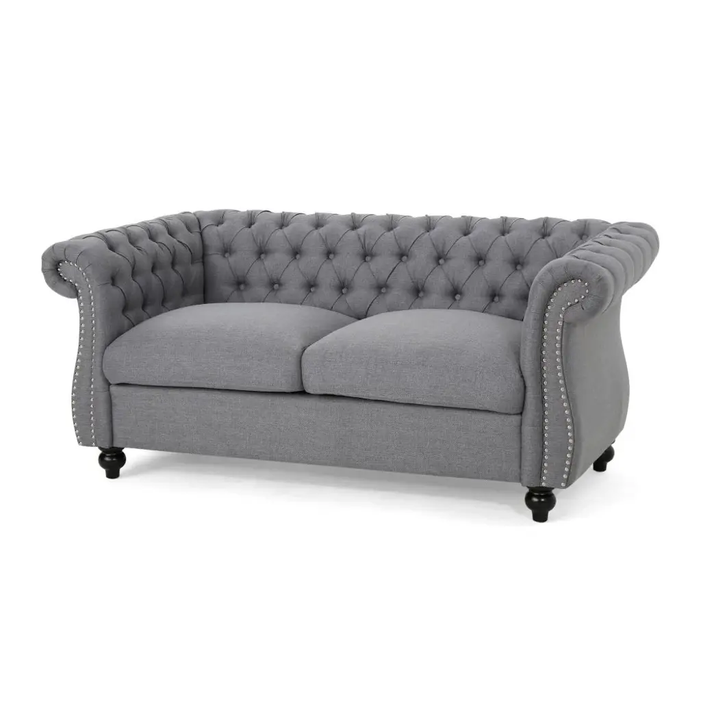 Button-Tufted Fabric Loveseat Sofa With Nailhead - Dark Grey